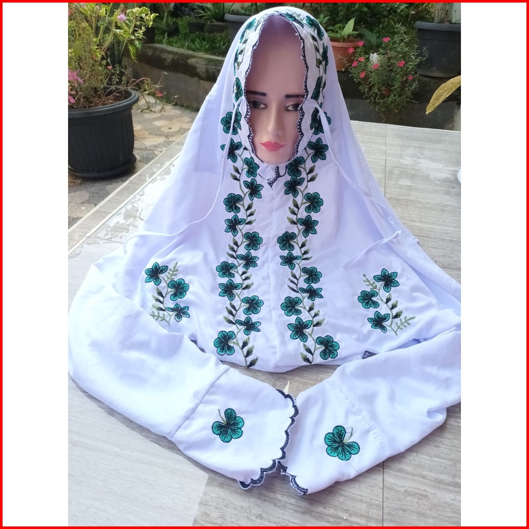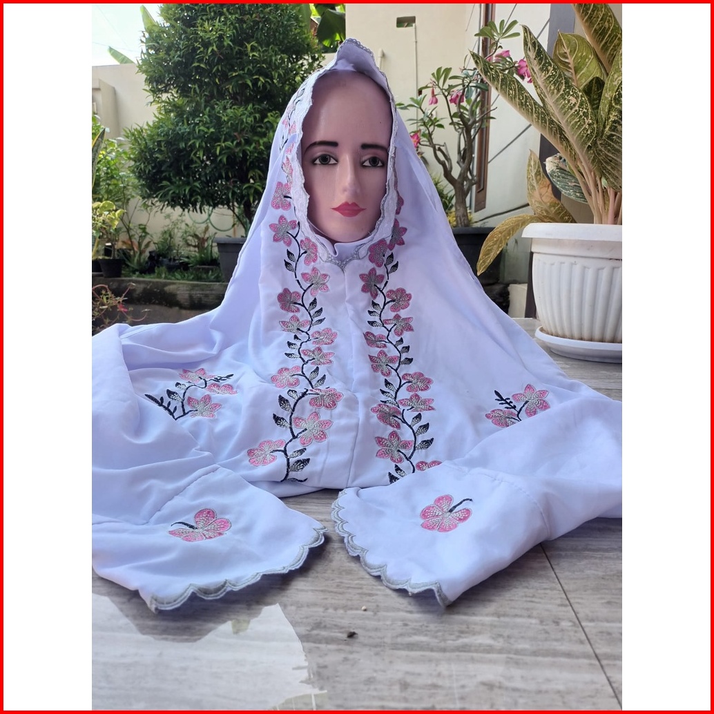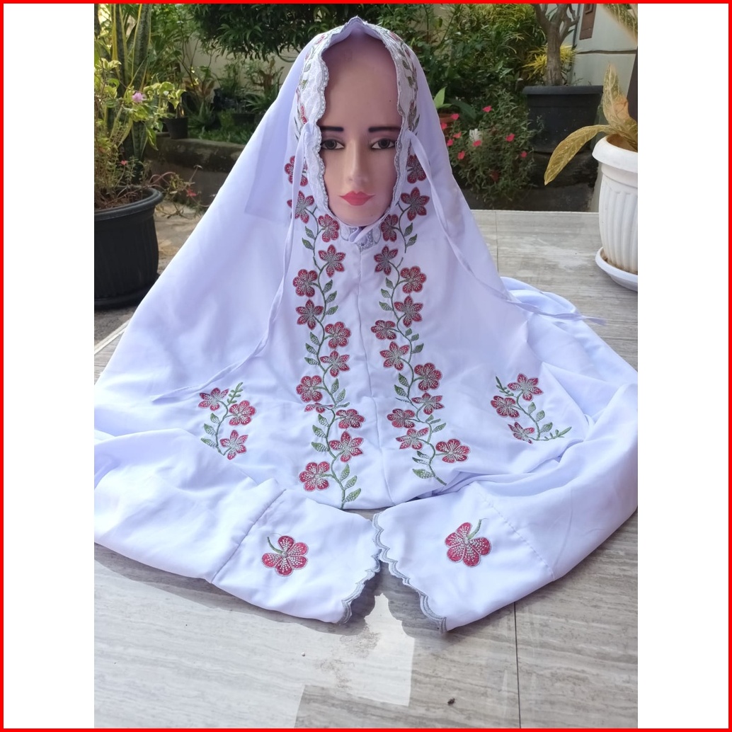 Mukena Lajuran Terusan Langsungan Dewasa Motif Bunga Rambat Depan