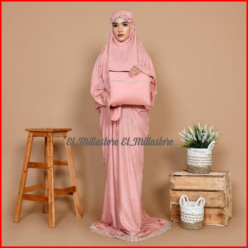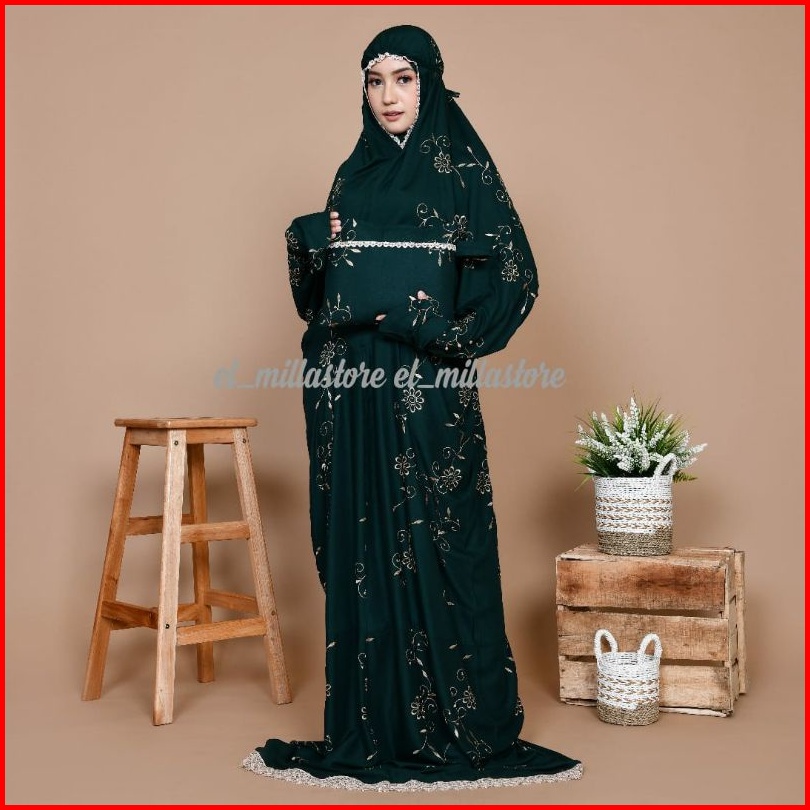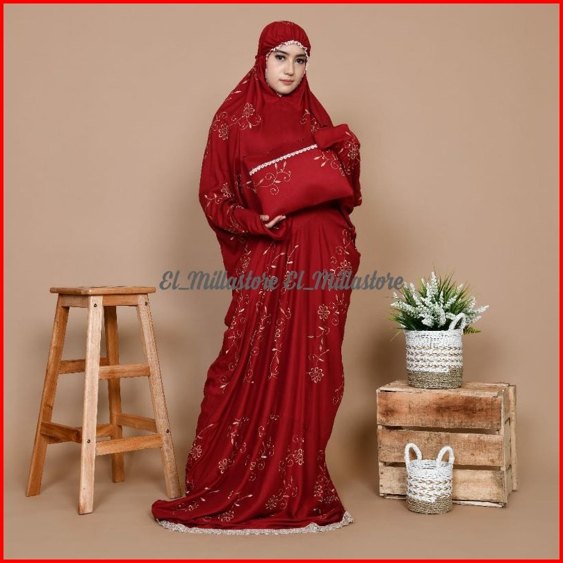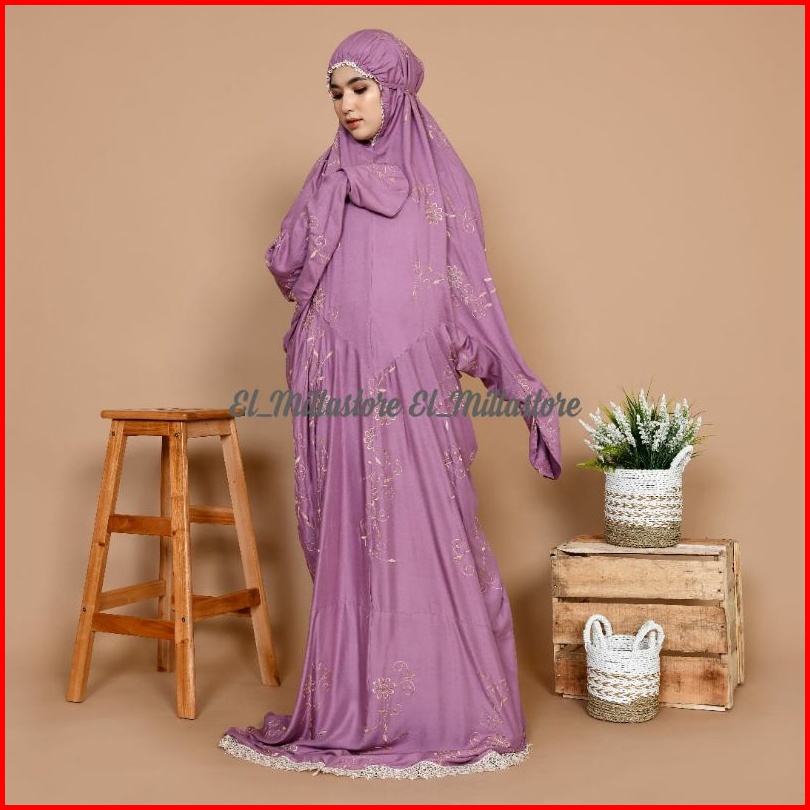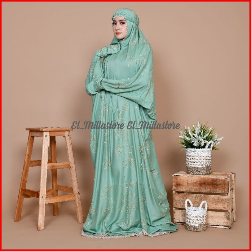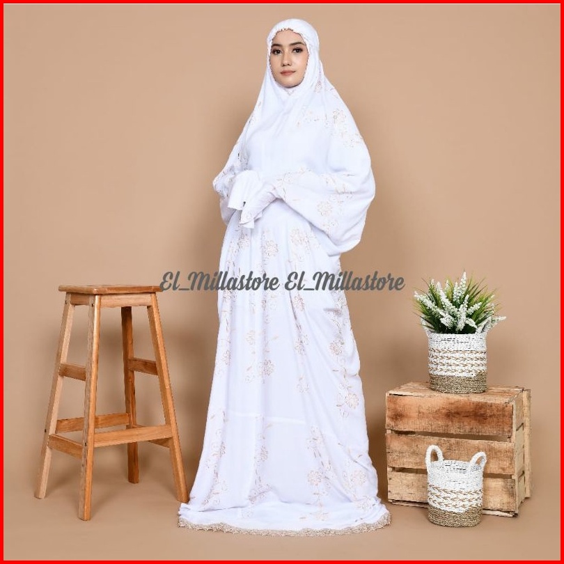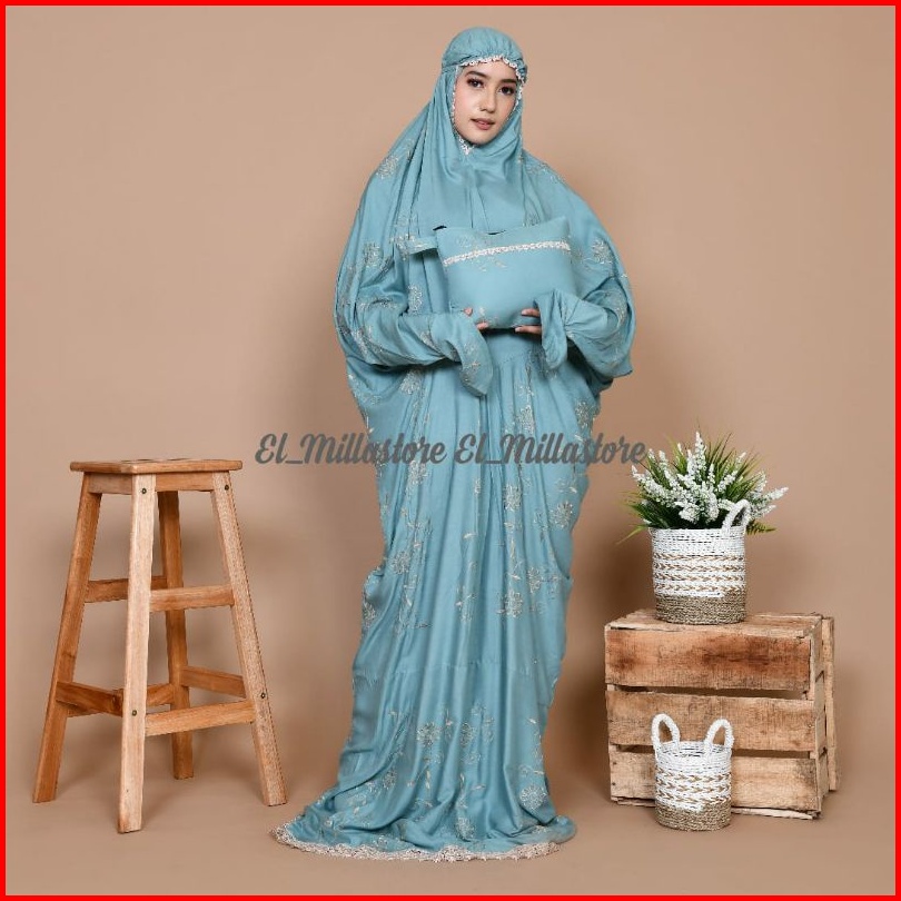 Mukena Terusan Dewasa Rayon Bordir Bunga Teratai Gracella