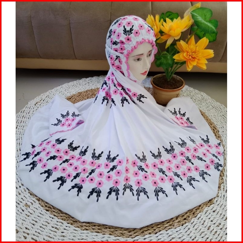 Mukena Terusan Dewasa Dahi Berkerut Bunga Rismala