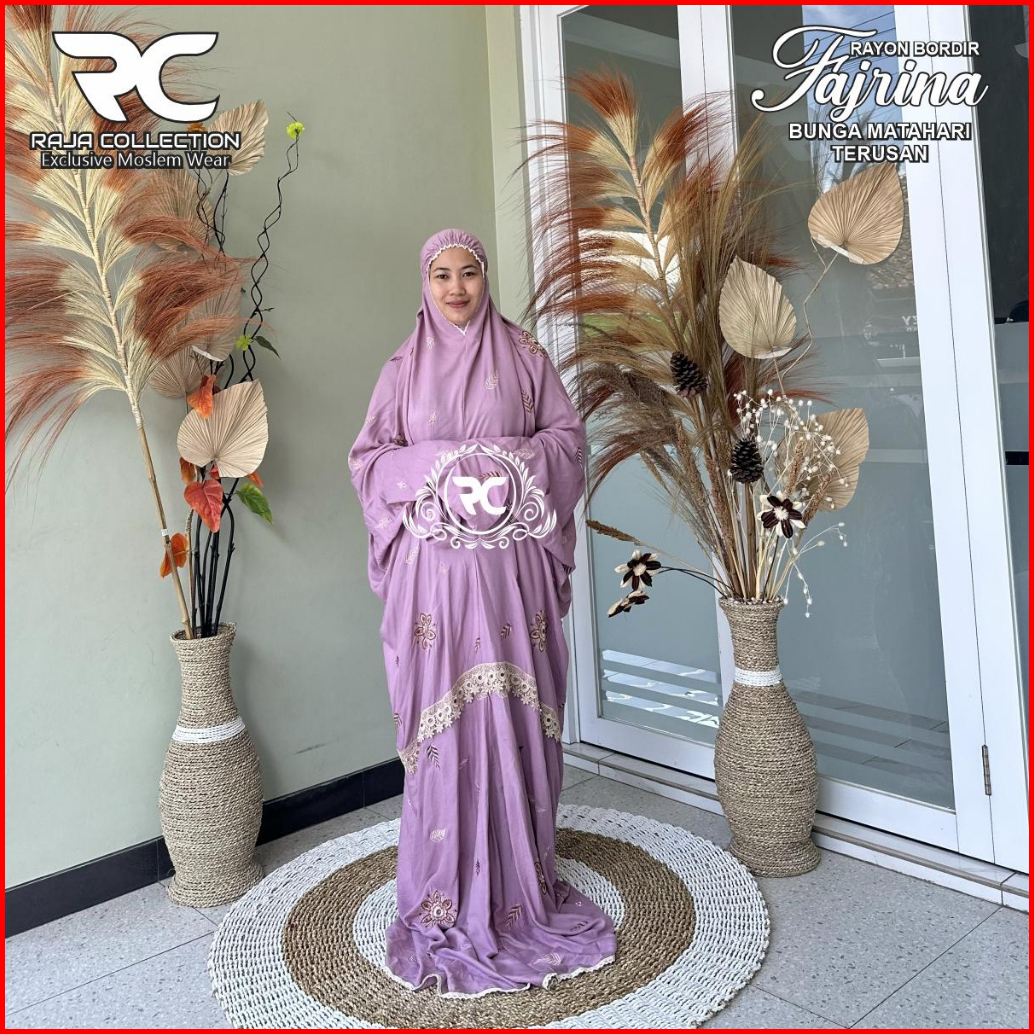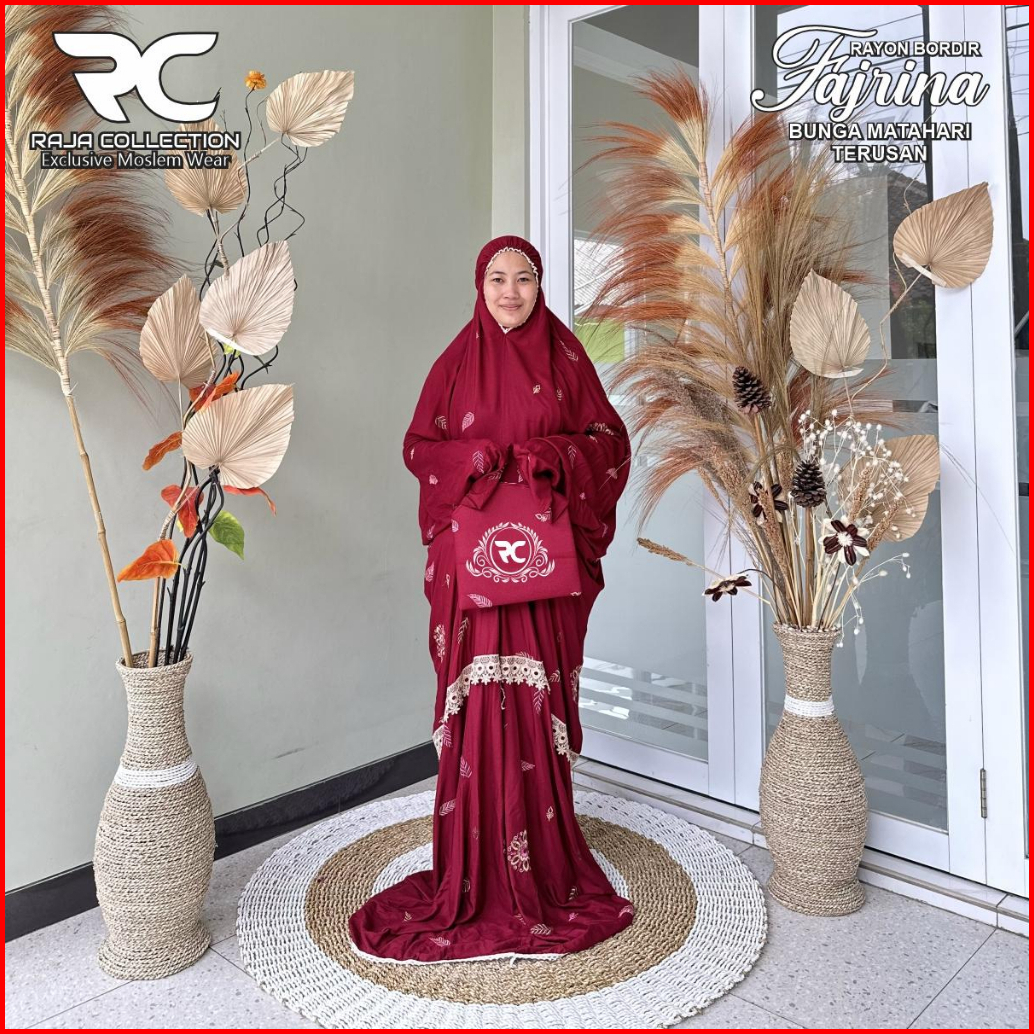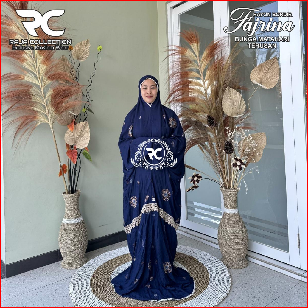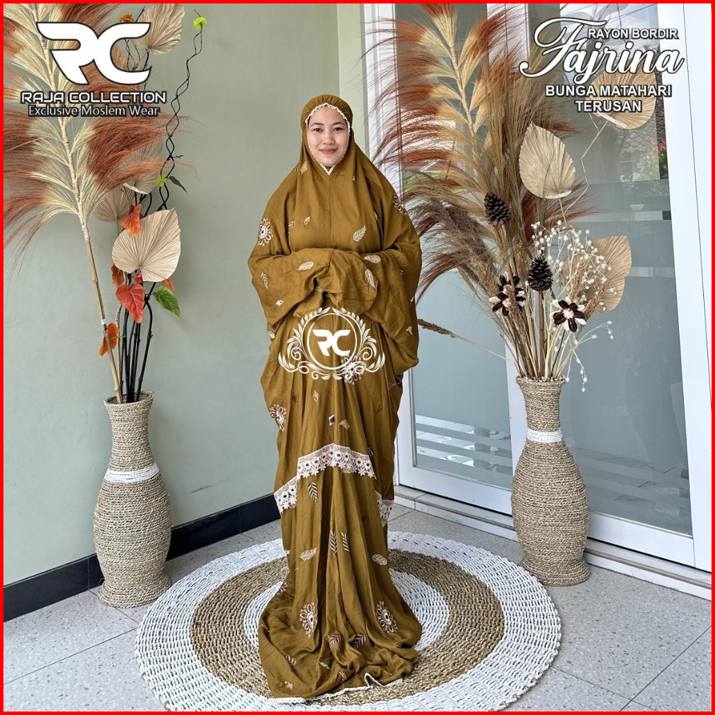 Raja Collection459 - Mukena Terusan Dewasa Jumbo Rayon Bordir Fajrina Bunga Matahari Terusan