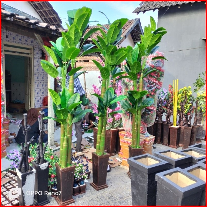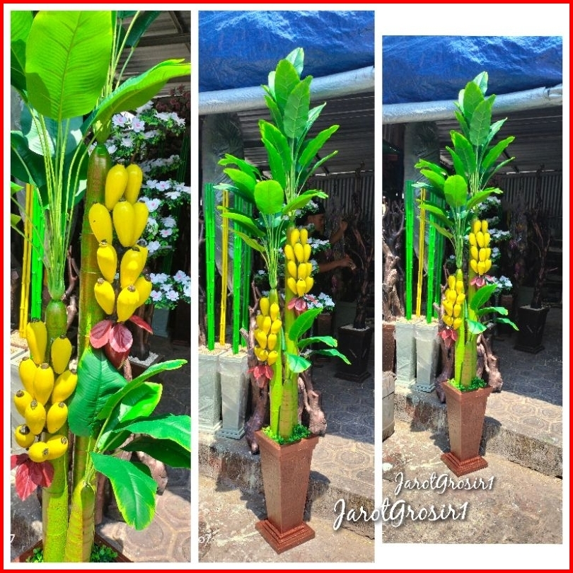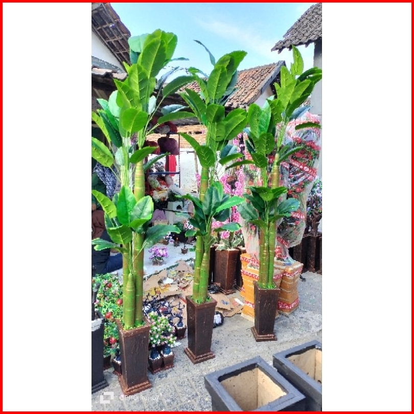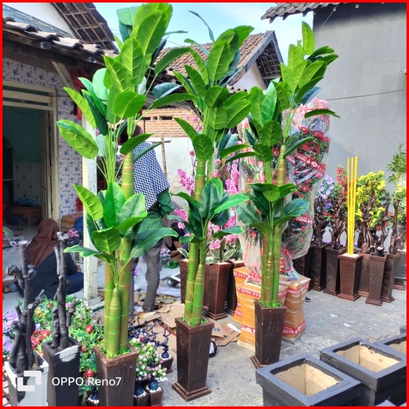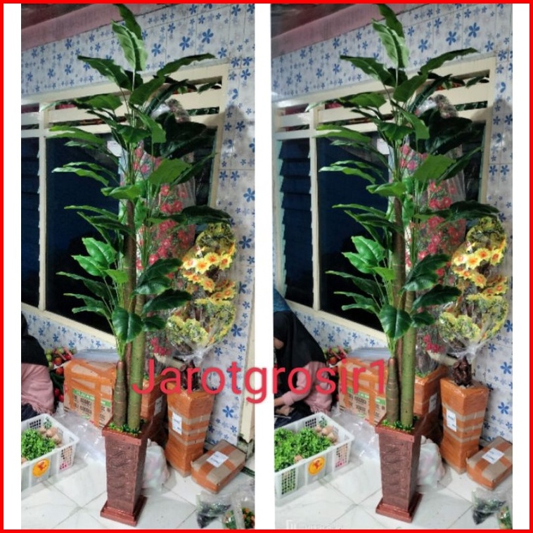 Pohon Pisang Dengan Pot Jumbo Tinggi 2 Meter . Bunga Hias Pisang Artificial Plastik Kain Import Tiruan Dekorasi Sudut Ru
