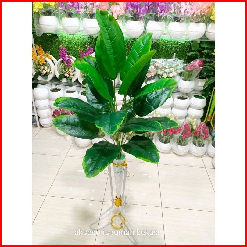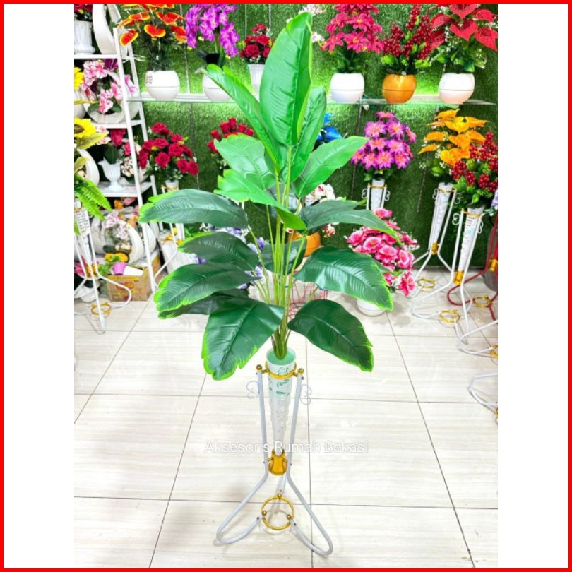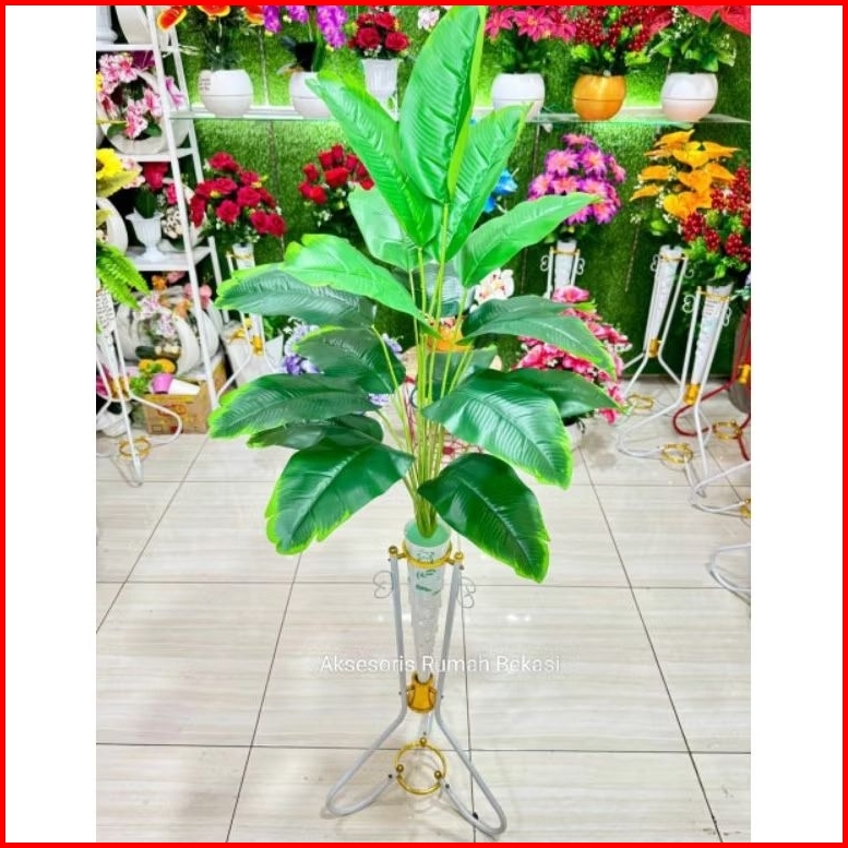 Bunga Sudut Pohon Pisang Artificial Jumbo Dengan Pot Standing Besi
