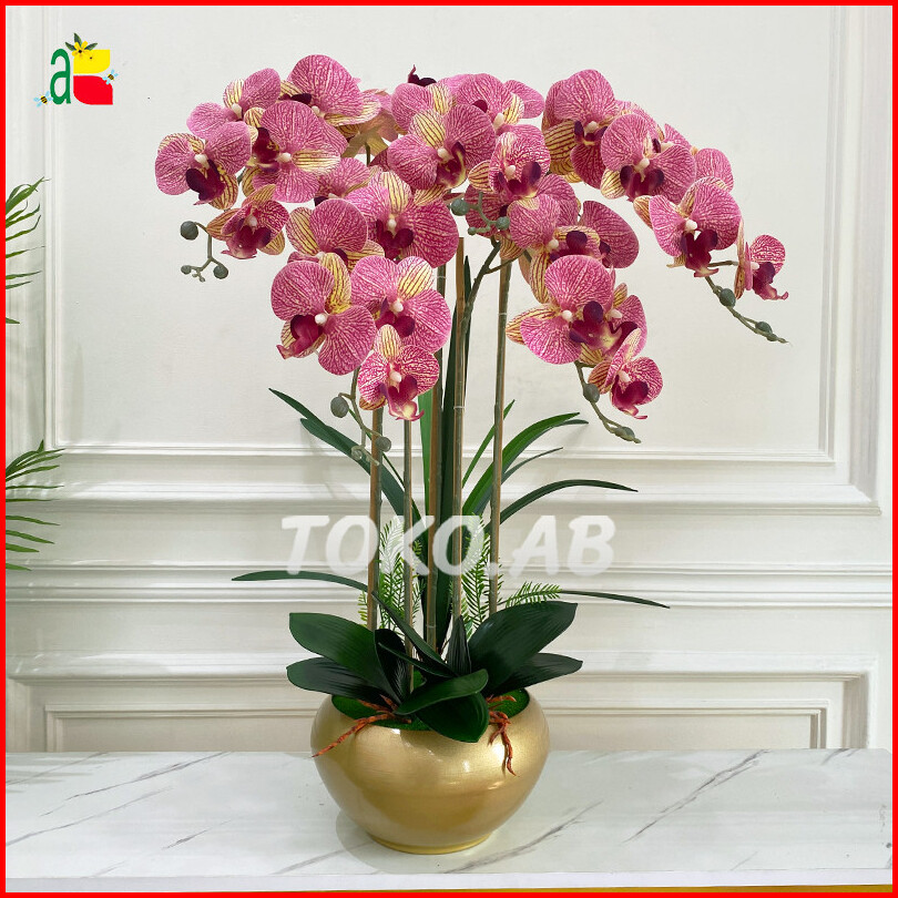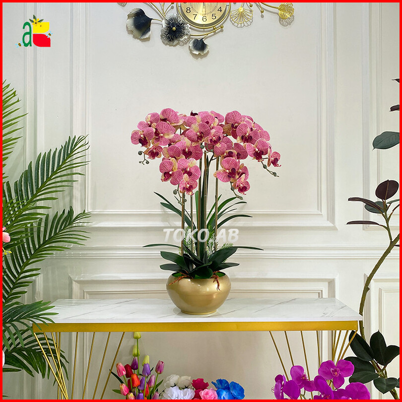 1 Set Rangkaian Bunga Anggrek Latex Jumbo Pot Besi Premium Rb6104 Rangkaian Bunga Besar Jumbo Bunga Anggrek Latex Bunga