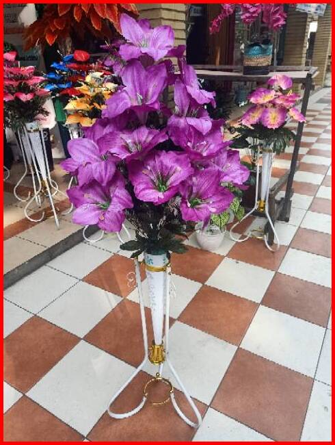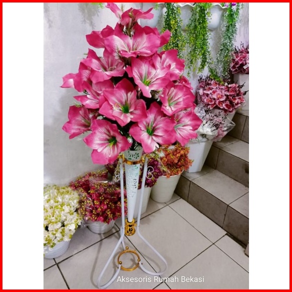 Rangkain Bunga Amarilis Bunga Lilly Dengan Pot Standing Besi Bunga Sudut Ruangan