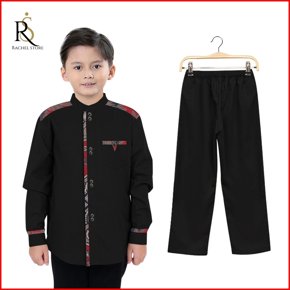 Rachel Fashion Baju Setelan Koko Batik Kurta Pakistan Anak Laki-laki 4 Tahun - 10 Tahun Lengan Panjang Terbaru 2022