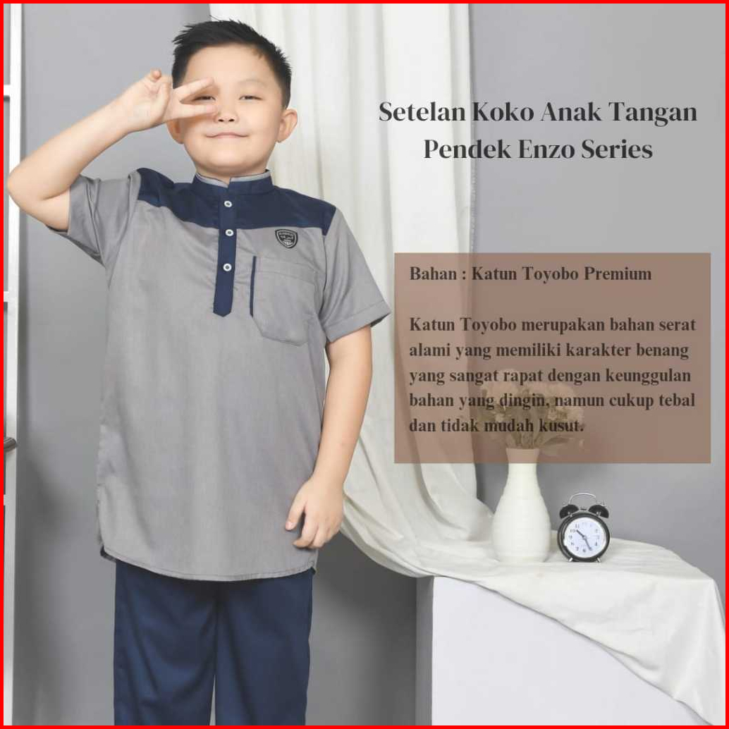Setelan Koko Anak Tangan Pendek 6 - 14 Tahun Enzo Series Original Kuwuk Fashion