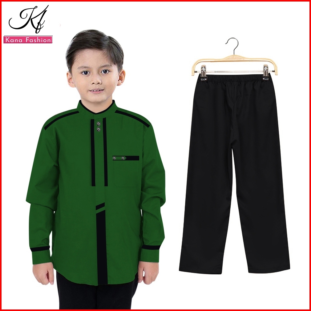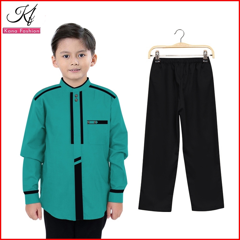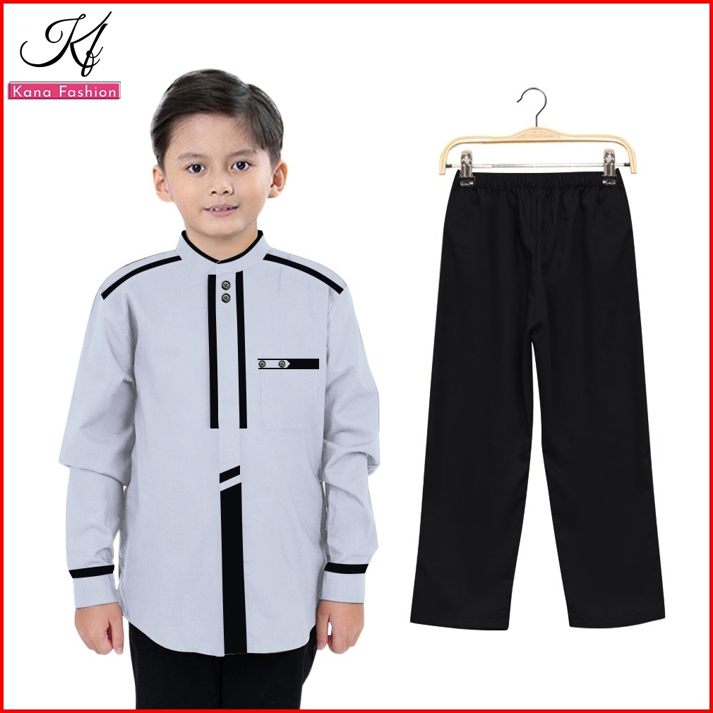 Kana Fashion Setelan Koko Muslim Anak Laki-laki Putih Polos Lengan Panjang One Set Usia 2-12 Tahun Terlaris Termurah 202
