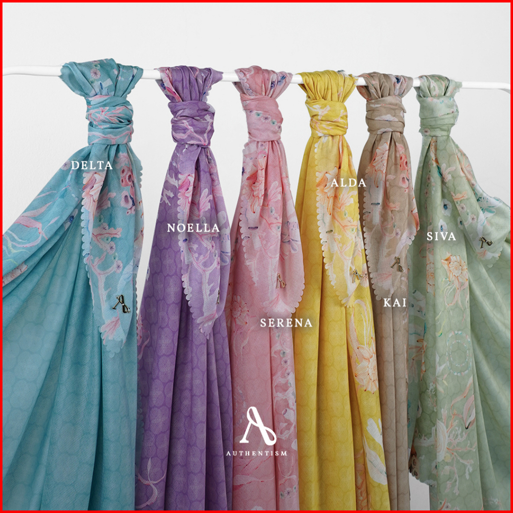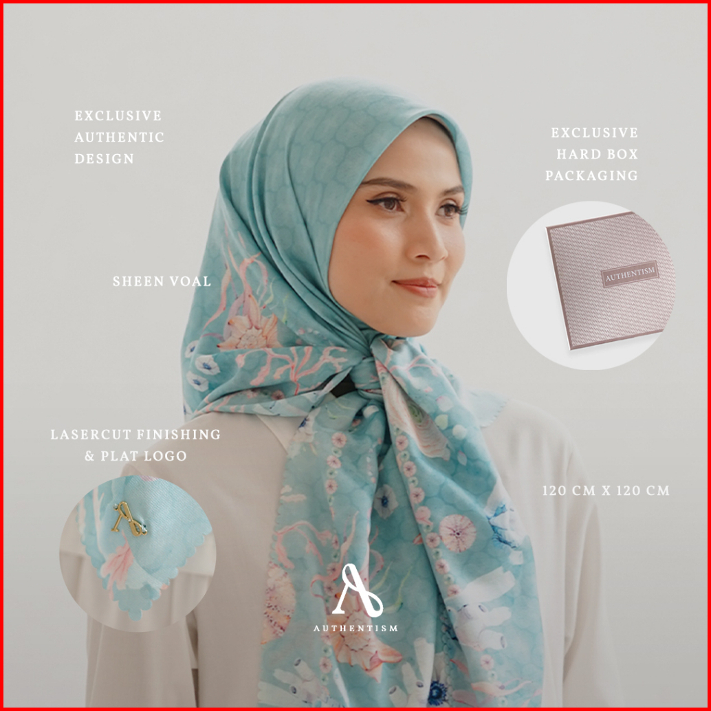 Authentism Id Oceanna Series Scarf Original Kerudung Segi Empat Sheen Voal Ultrafine Lasercut Terbaik Premium Hijab Moti