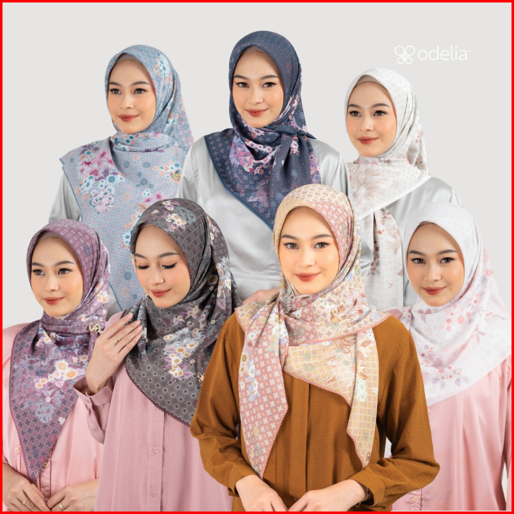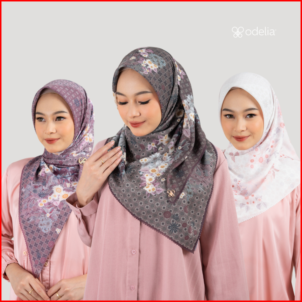 Odelia - Majeeda Scarf 4 In 1 I Hijab Printing Segi Empat I Segiempat Premium I Motif Lasercut