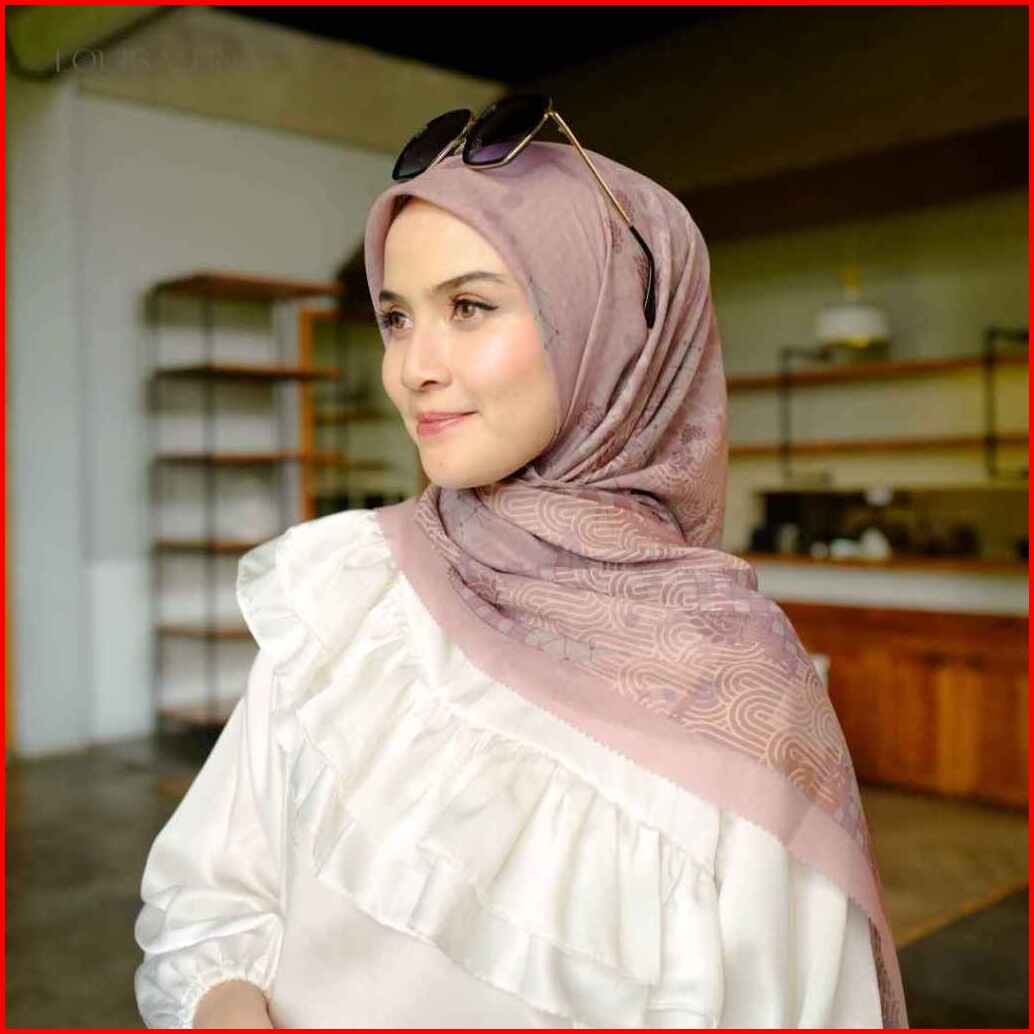 Hijab Segiempat Motif Voal Premium Lasercut - Elma 120 135 Cm - Lembut Elegan - Louisaluna