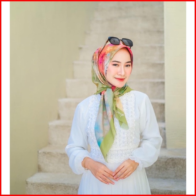 Baniescoop - Hijab Voal Motif Ultrafine Lula Lime Series Premium Uk 115 X 115 Cm - Jilbab Segi Empat Modern Scarf Terbar