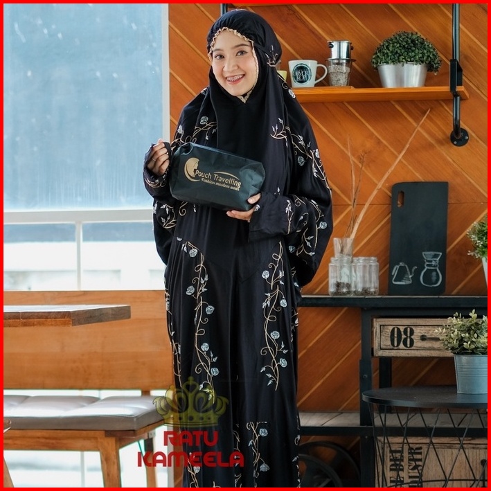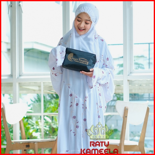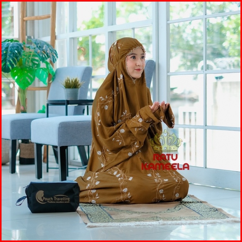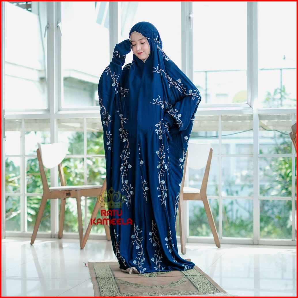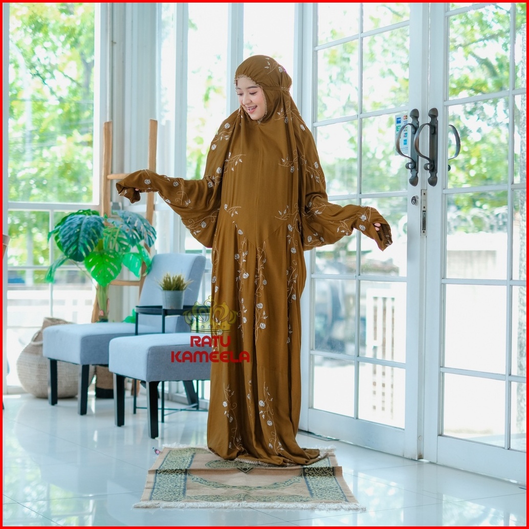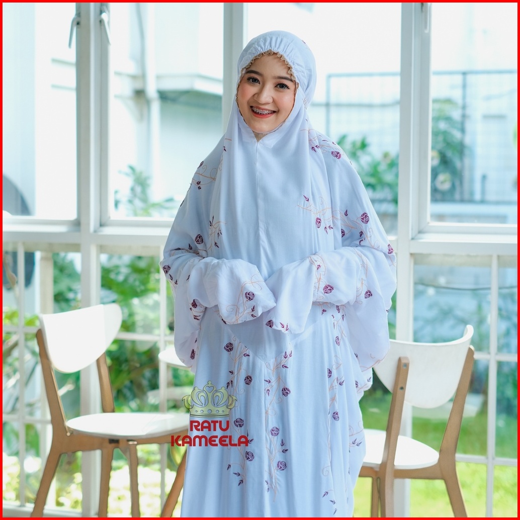 Ratu Kameela - Mukena Terusan Dewasa Rayon Bordir Teratai Tulip Mukenah Lajuran Jumbo Cantik Terbaru