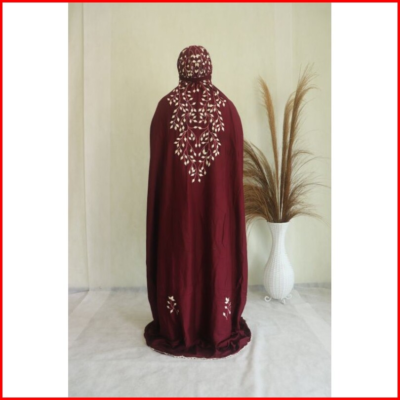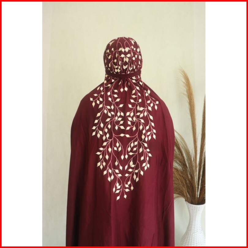 Nvl Collection - Mukena Terusan Lajuran Katun Rayon Bordir Dewasa - Rambat Daun Pk