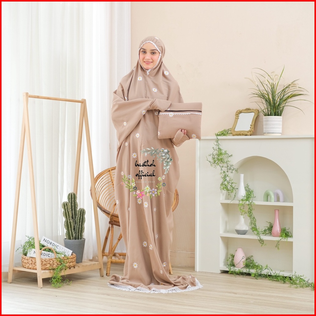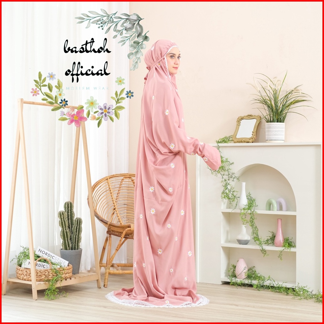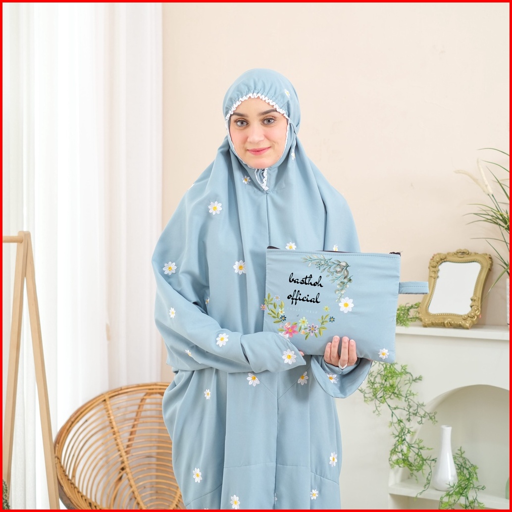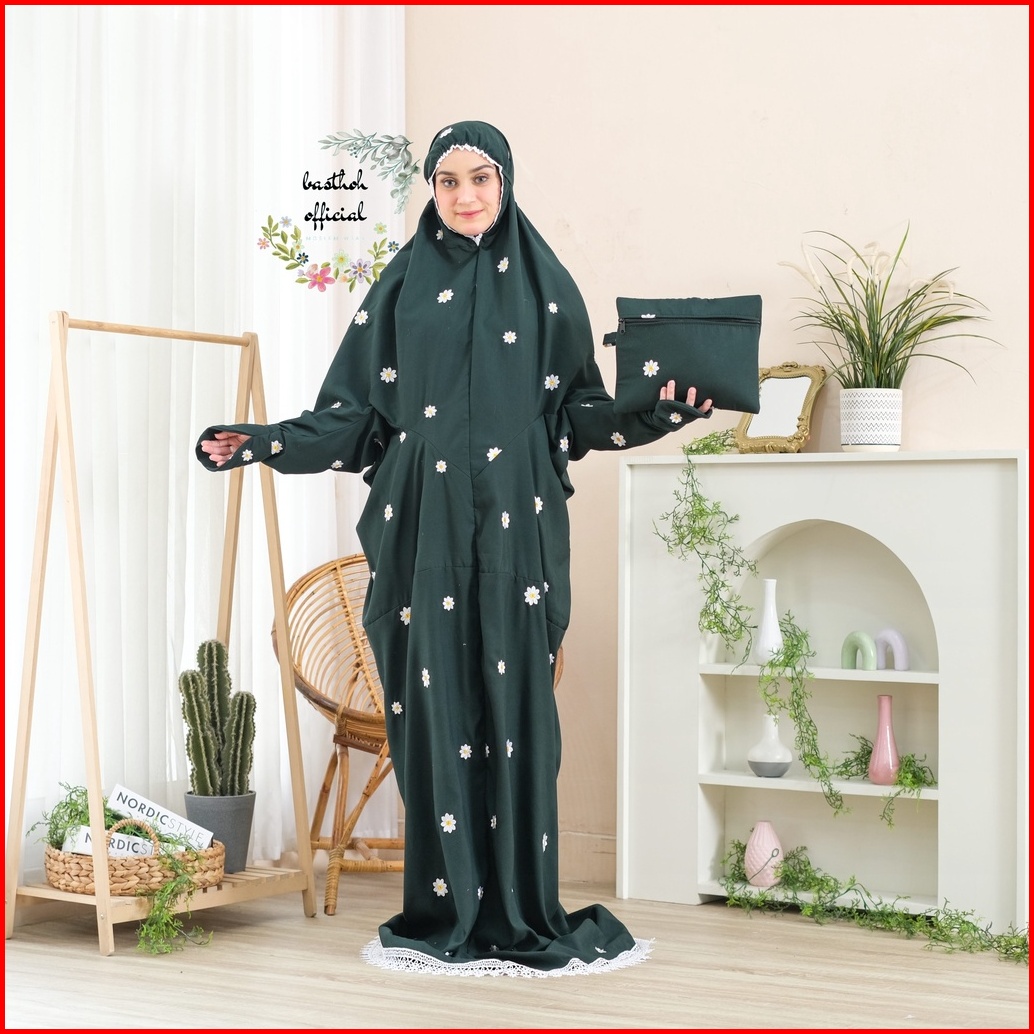 Mukena Terusan Dewasa Bordir Bunga Daisy Cotton Premium