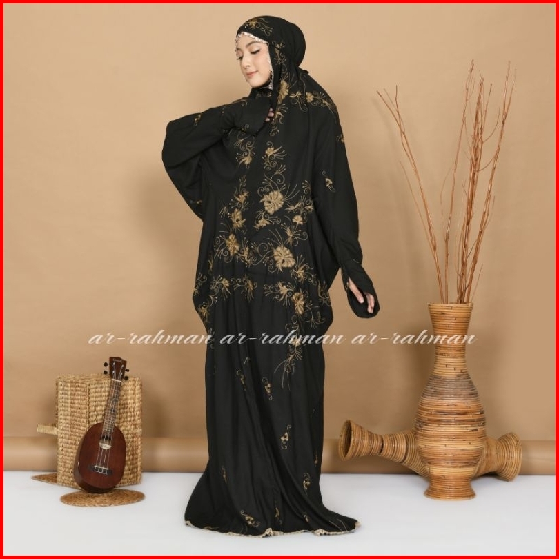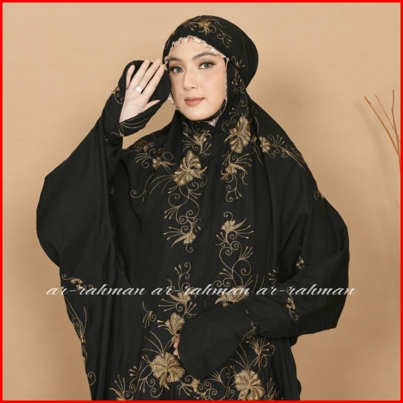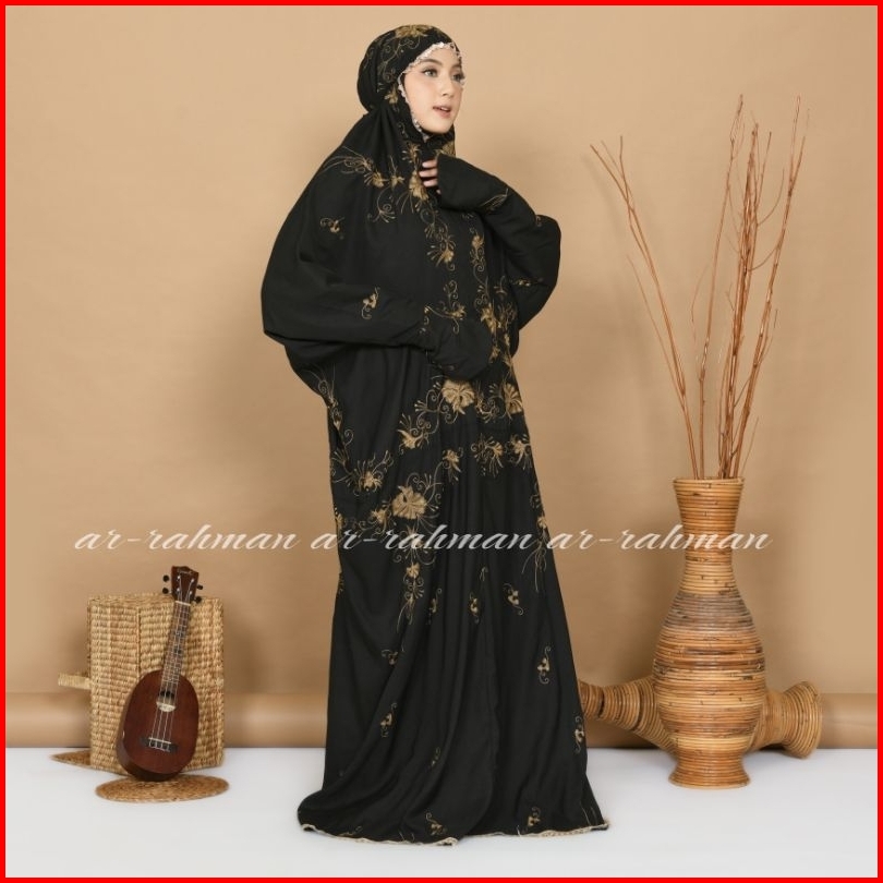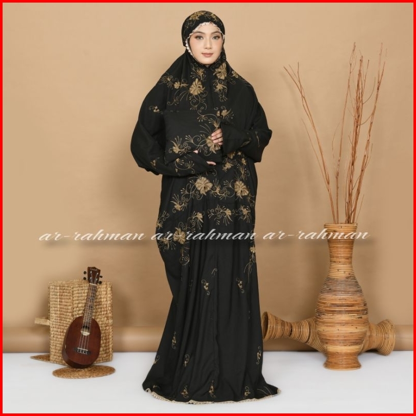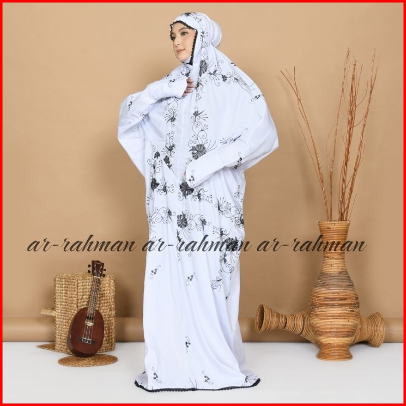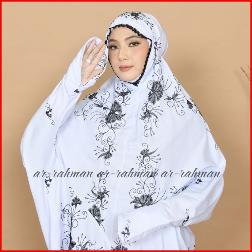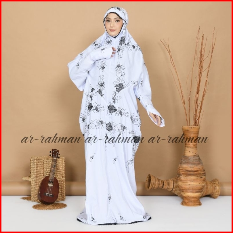 Ar-rahman - Mukena Terusan Dewasa Katun Premium Bordir Shaqueena Free Tass