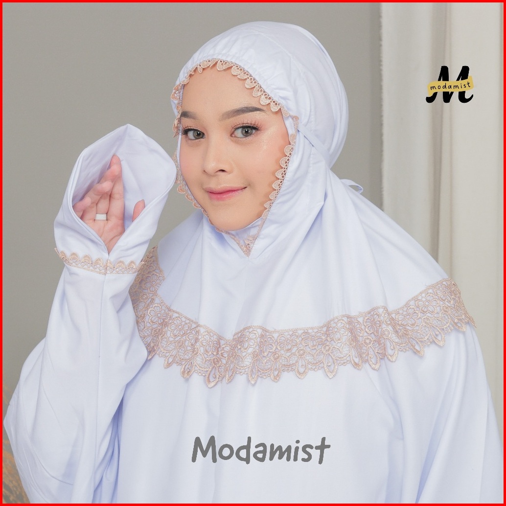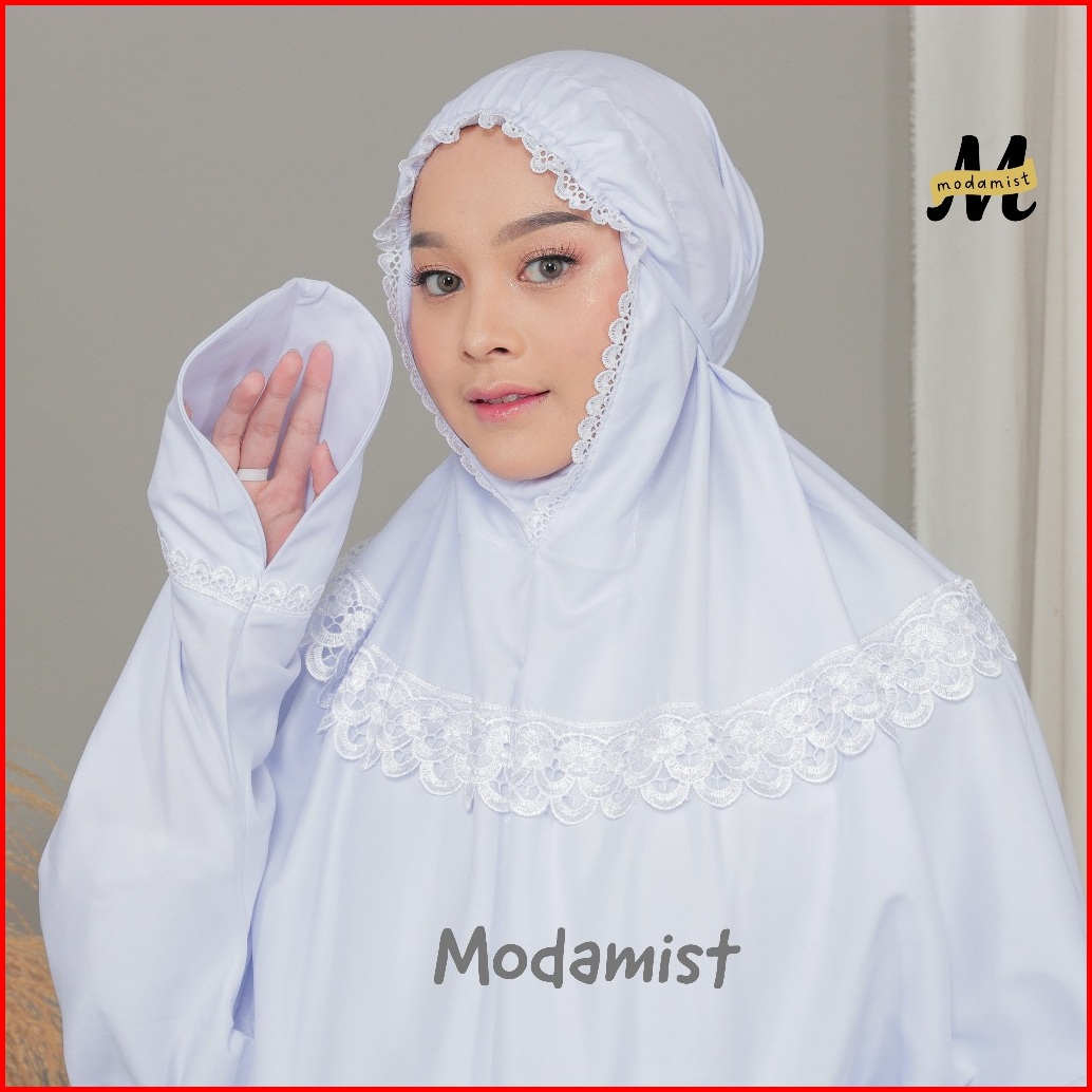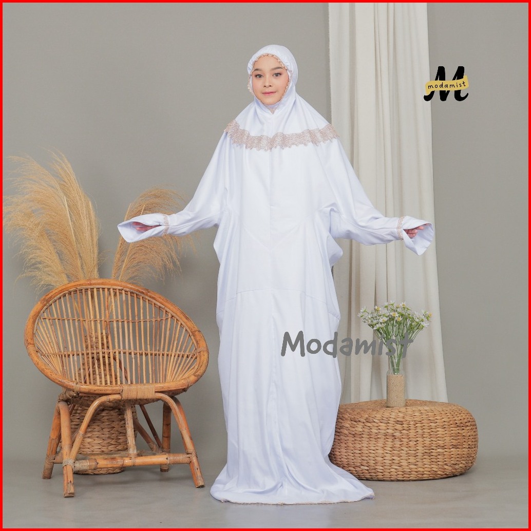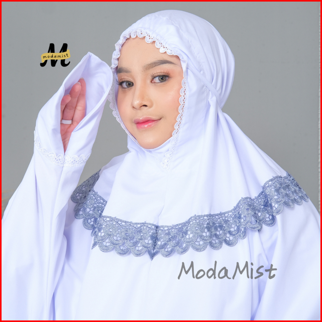 Mukena Terusan Dewasa Katun Putih Polos Renda Gipper Kalung Traveling