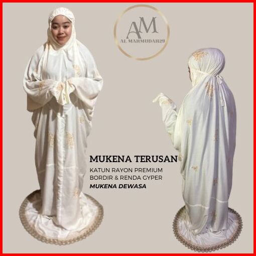 Mukena Terusan Katun Rayon Dewasa Jumbo Bordir Free Tas Pouch