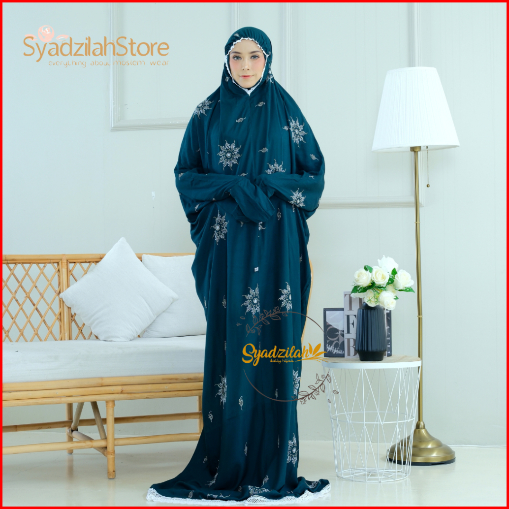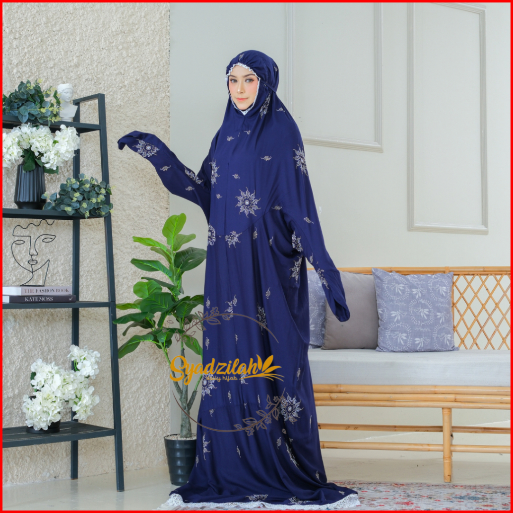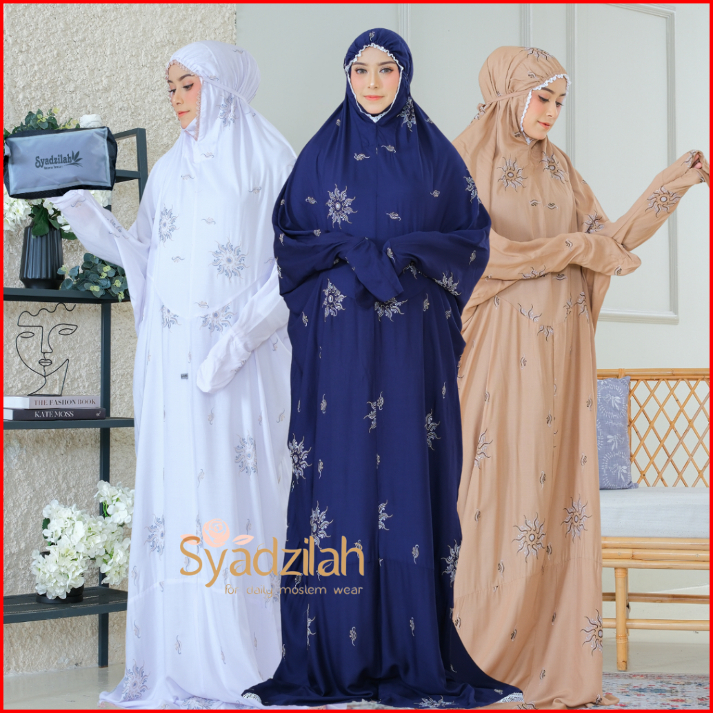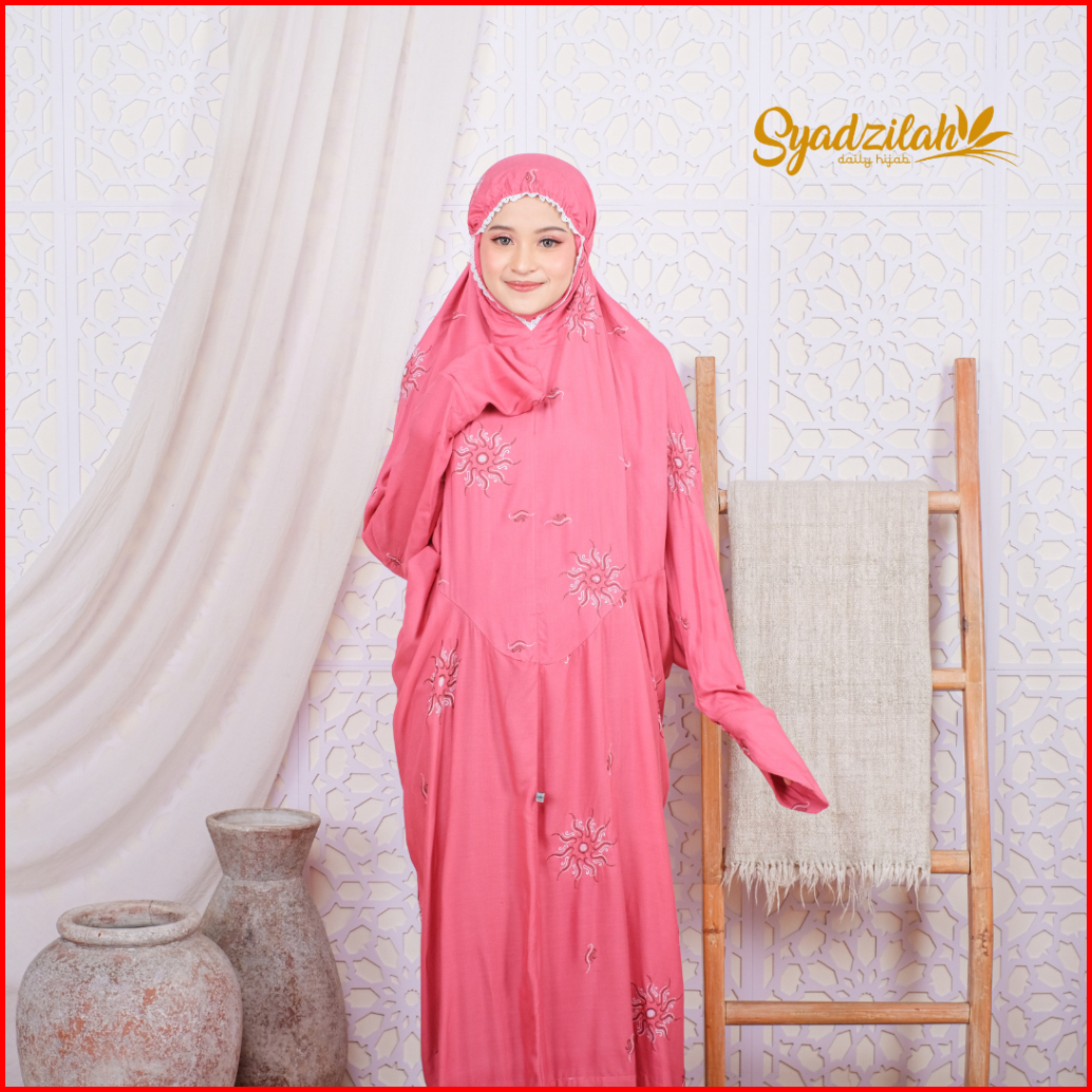 Syadzilah - Mukena Terusan Dewasa Bordir Bunga Plum Katun Rayon