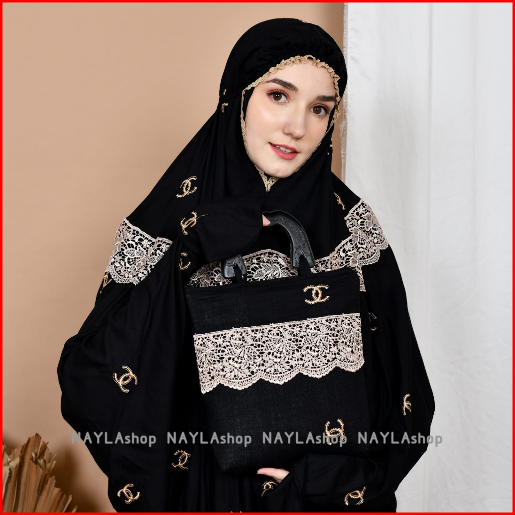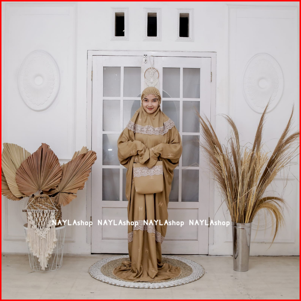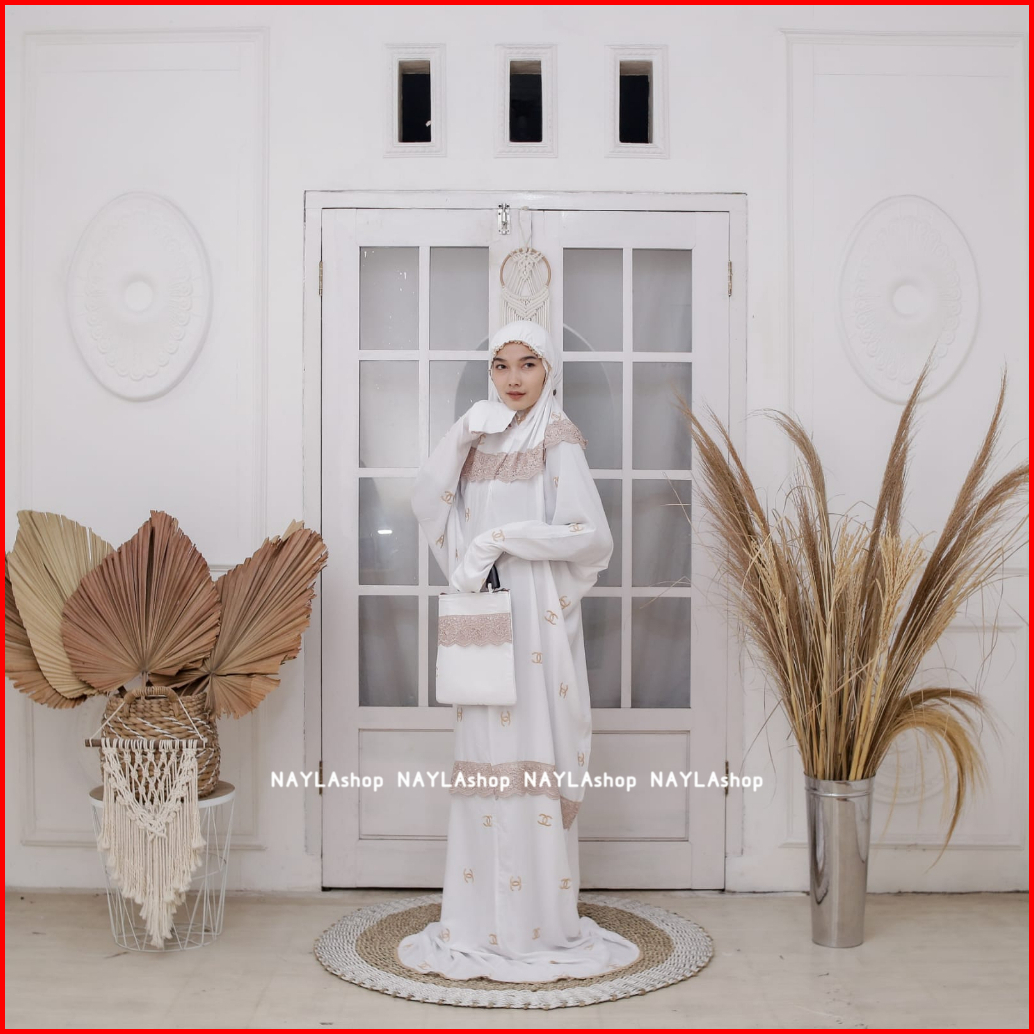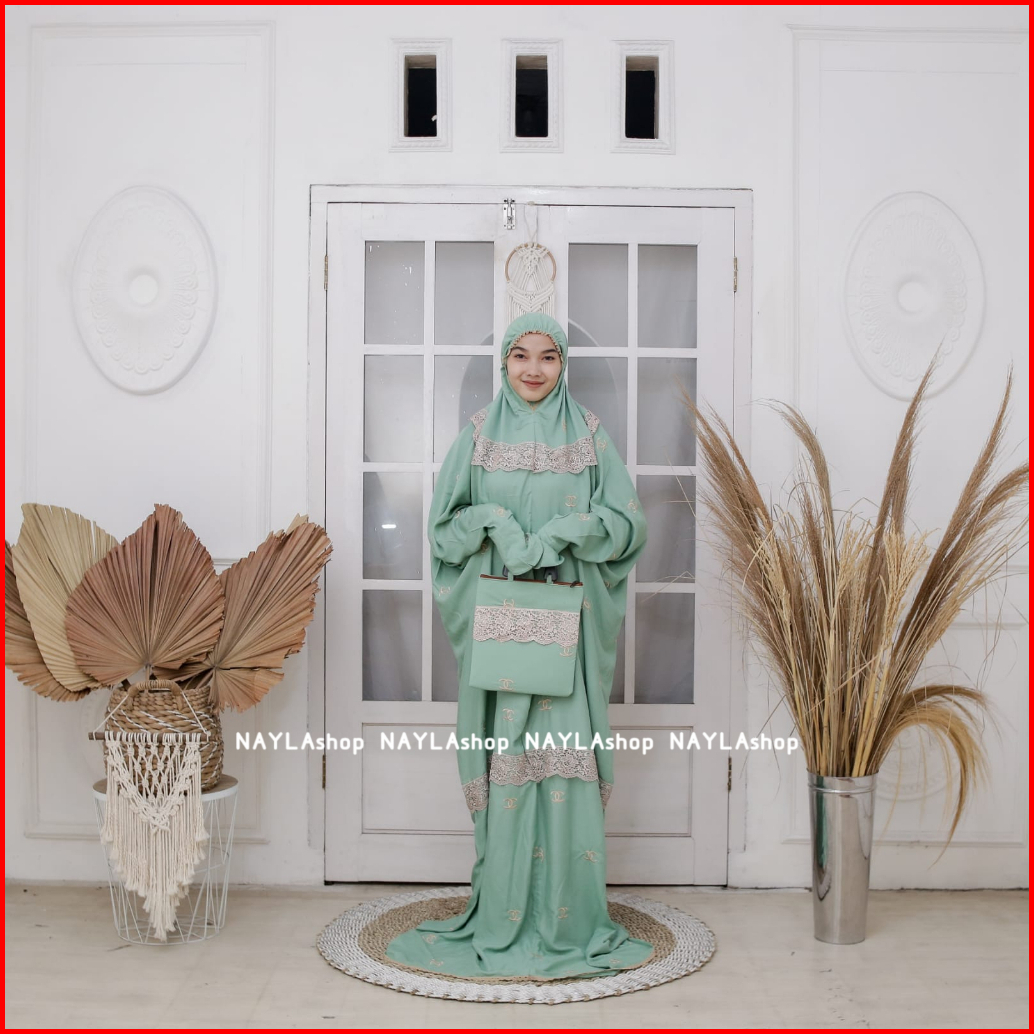 Mukena Terusan Bordir Syanela Renda Mewah Rayon Premium Mukenah Lajuran Dewasa Telekung