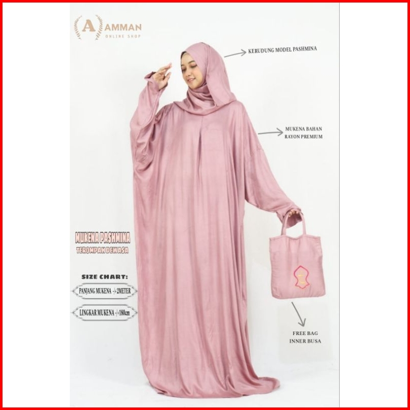 Mukena Pashmina Terompah Dewasa - Mukenah Hadramaut Polos Traveling Jumbo Rayon Premium Bali Murah Kain Panjang Muslim V