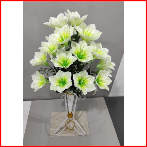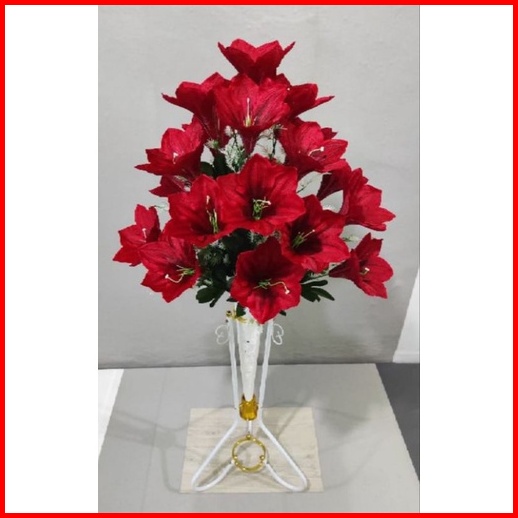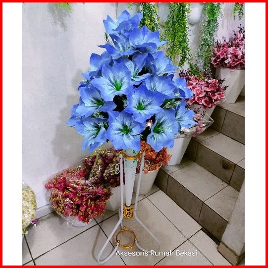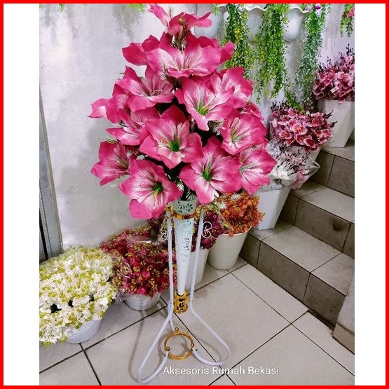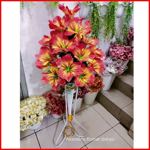 Rangkain Bunga Amarilis Anthurium Lilly Artificial Dengan Pot Standing Besi Bunga Sudut Ruangan