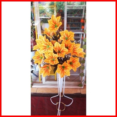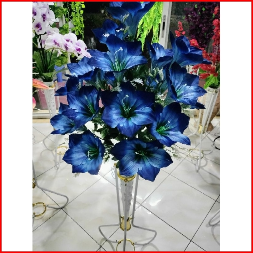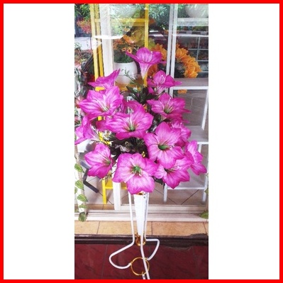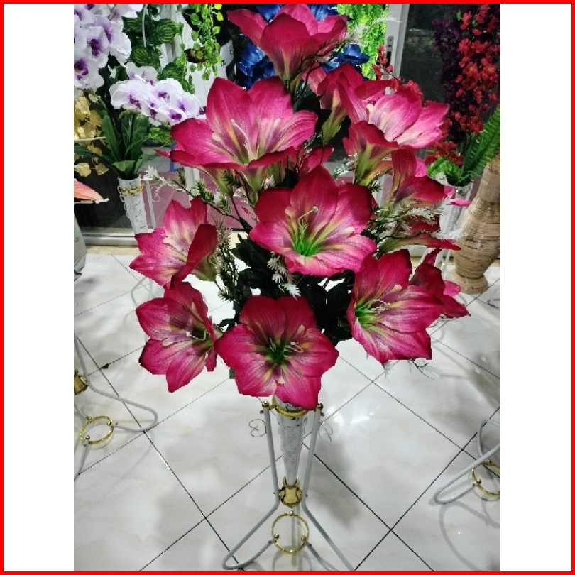 Rangkaian Bunga Amarilis Bunga Lily Dengan Pot Standing Besi Import Bunga Sudut Ruangan