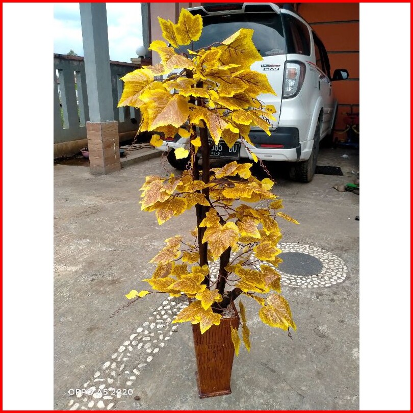 Daun Anggur Kuning100cm Bunga Hias Sudut Ruangan Daun Anggur