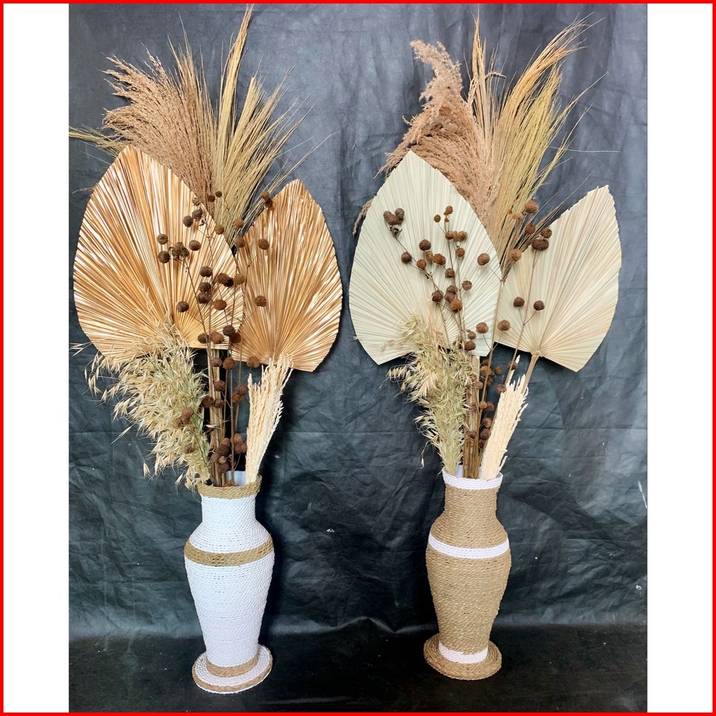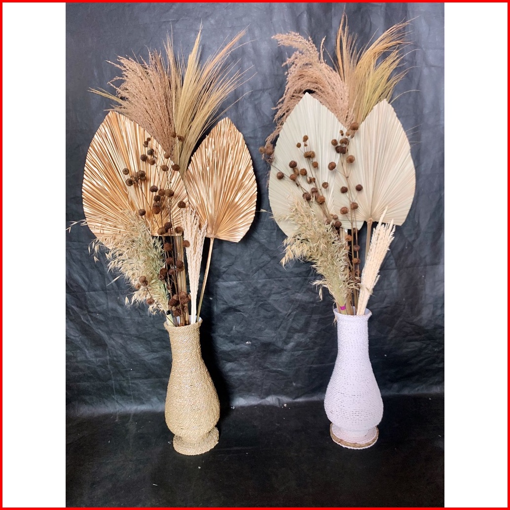 Daun Kering Rustic Dekorasi Palem Kering Dengan Vas 40 Cm