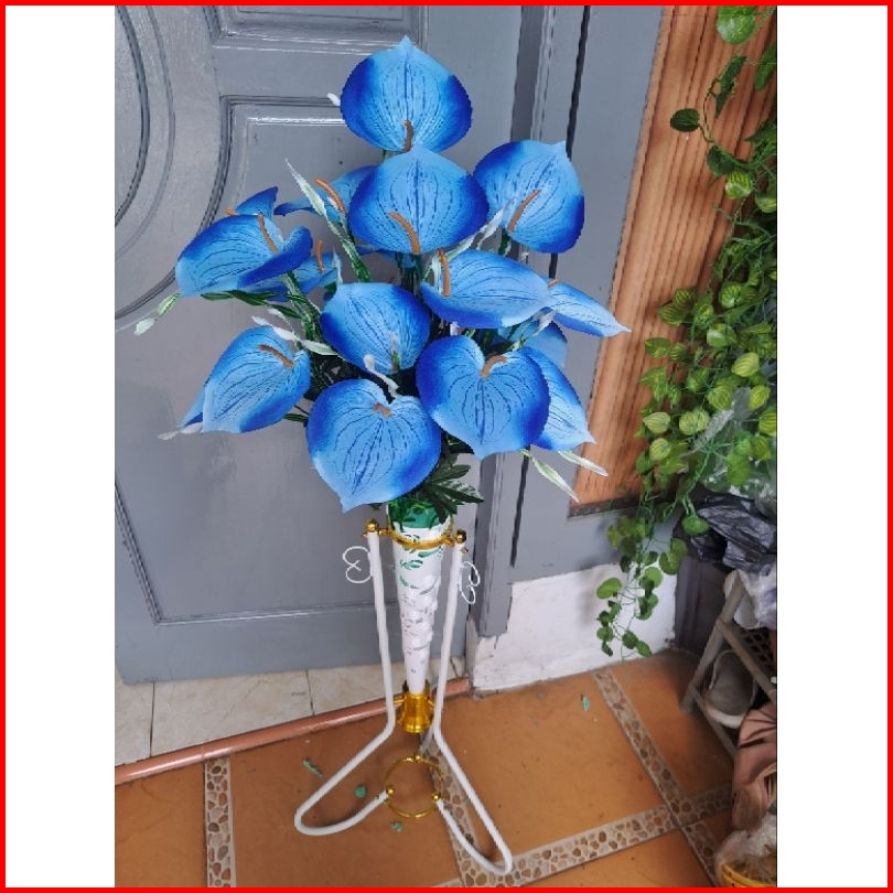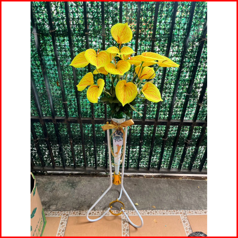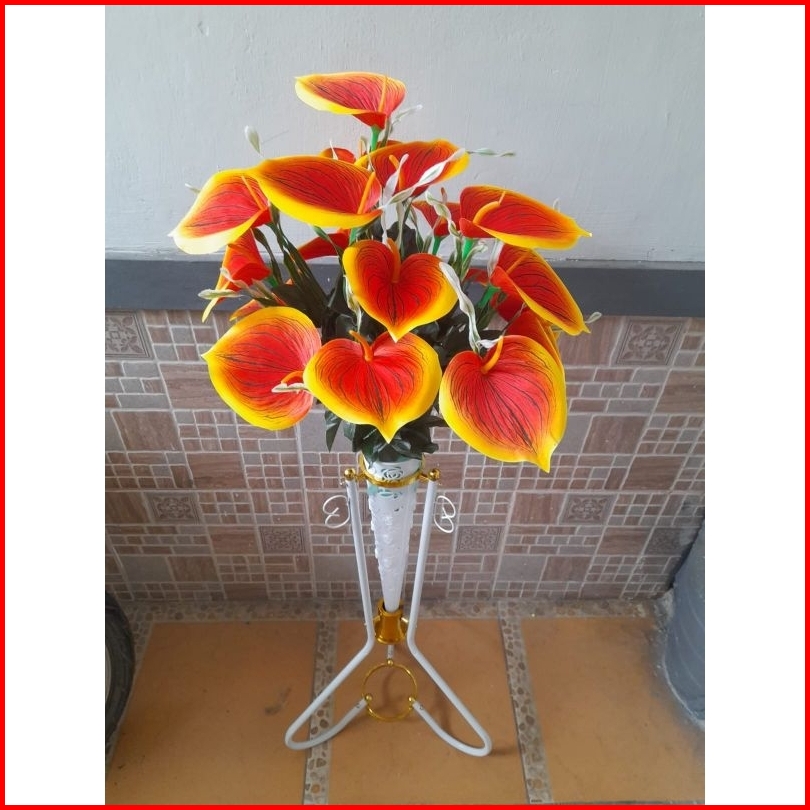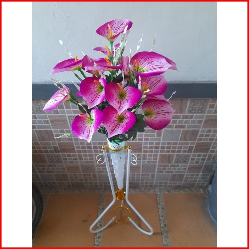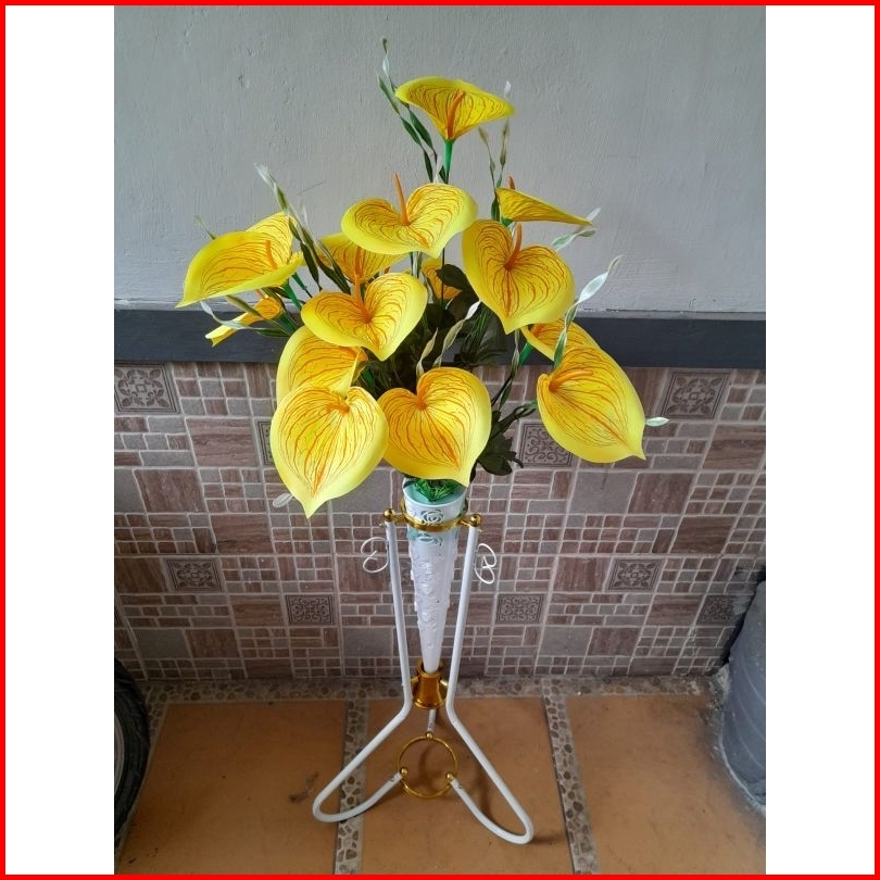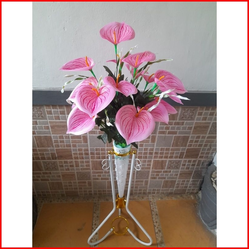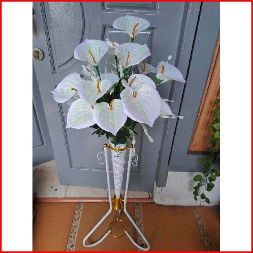 Bunga Aron Panda Kuntum 18 Berikut Pot Standing Besi Corong Bunga Pojok Bunga Sudut Ruangan Bunga Pojok Ruang Tamu