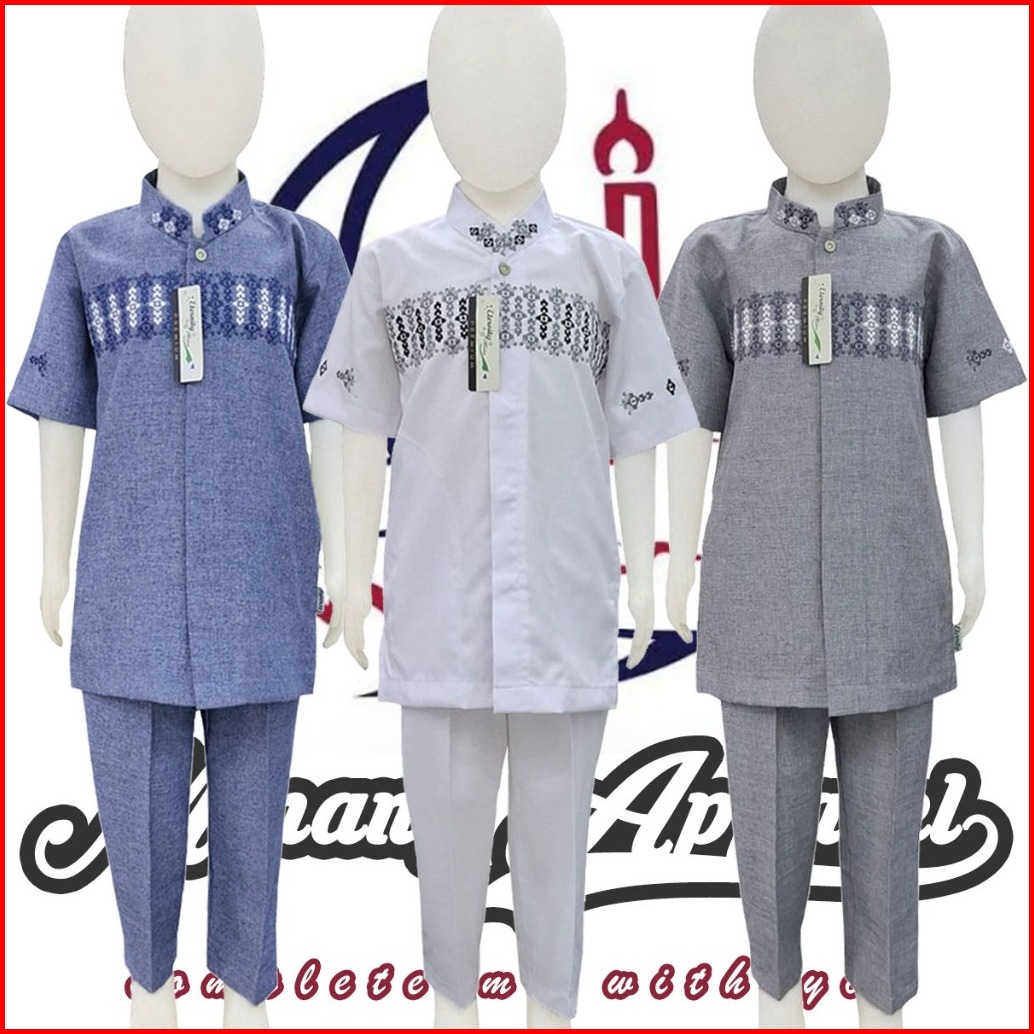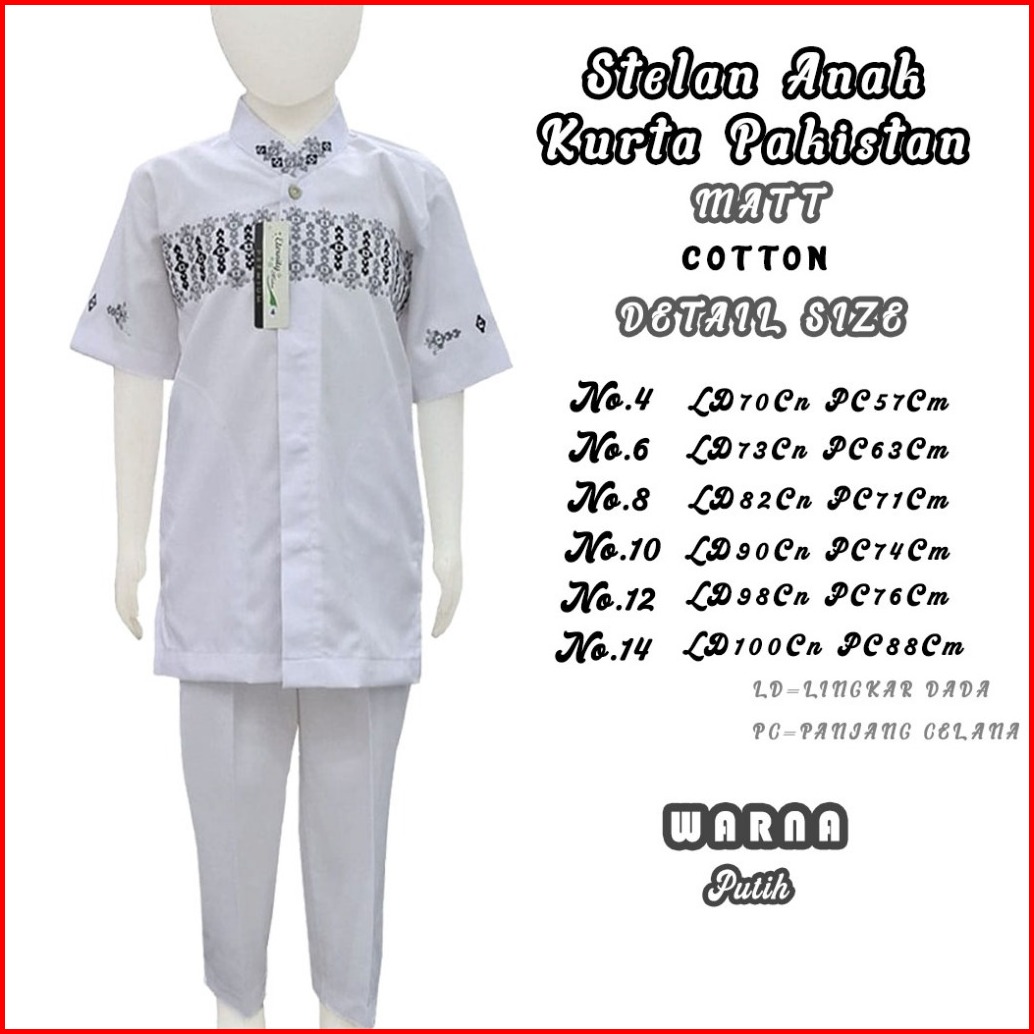 Baju Koko Kurta Pakistan Stelan Anak Laki Laki Umur 3 - 15 Tahun Bahan Katun Madina Lengan Pendek