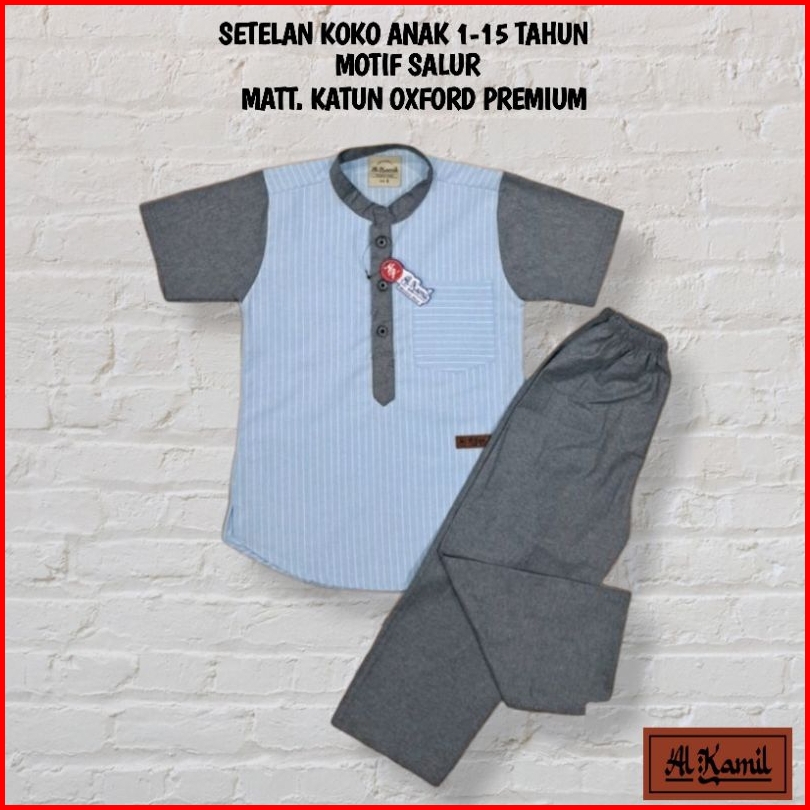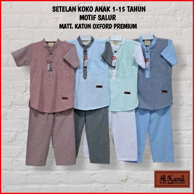 Setelan Koko Kurta Anak 11-15 Tahun Motif Salur Bahan Katun Oxford Premium Set Koko Bani Adam