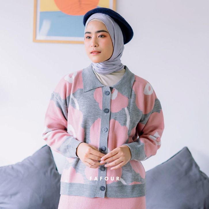 FAFOUR Claire Cardigan Rajut Wanita Bunga Big Flowers Oversize Knitwear HITS PRODUCT