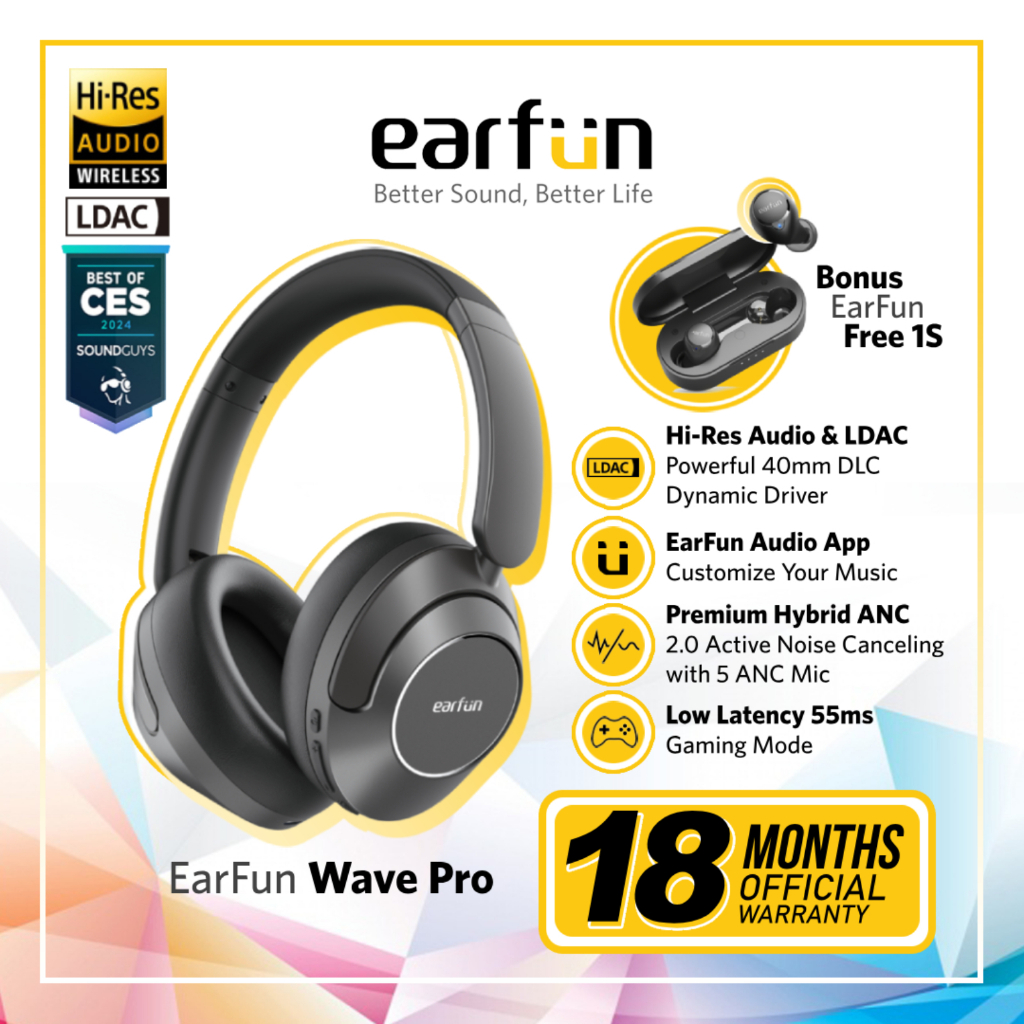 EarFun Wave Pro - Hi-Res LDAC Wireless Headphones with Premium Hybrid ANC