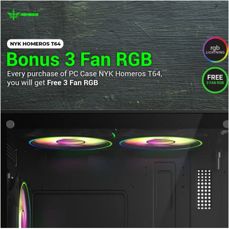 Casing PC Gaming NYK Homeros T64 M-ATX include 3Fan - PC Case T64