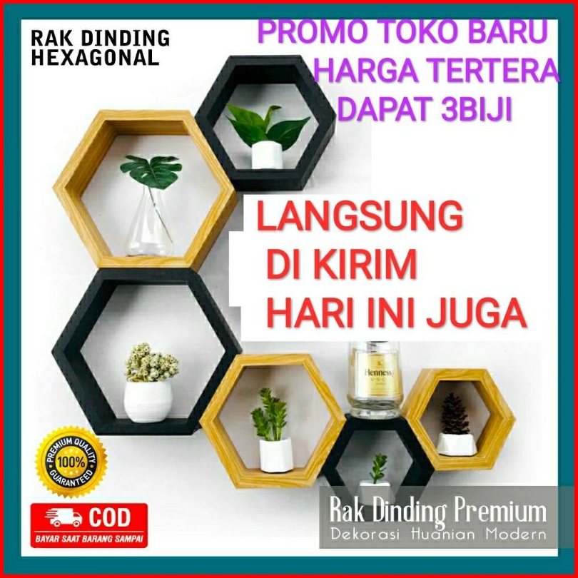 S.k Promo 1 Set 3biji Rak Hexagonal Hiasan Dinding Minimalis Kayu Dekorasi Rumah Ruang Tamu Kantor Kamar Tidur Mewah Ele