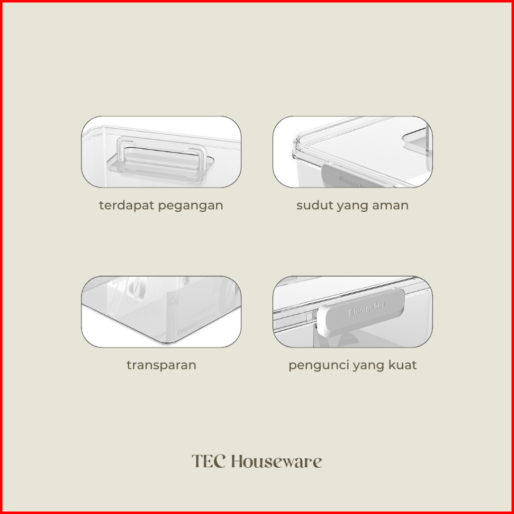 Tecrata Container Box Kotak Penyimpanan Serbaguna Organizer Multifungsi Storage Box Dengan Tutup Berkualitas Premium Tab