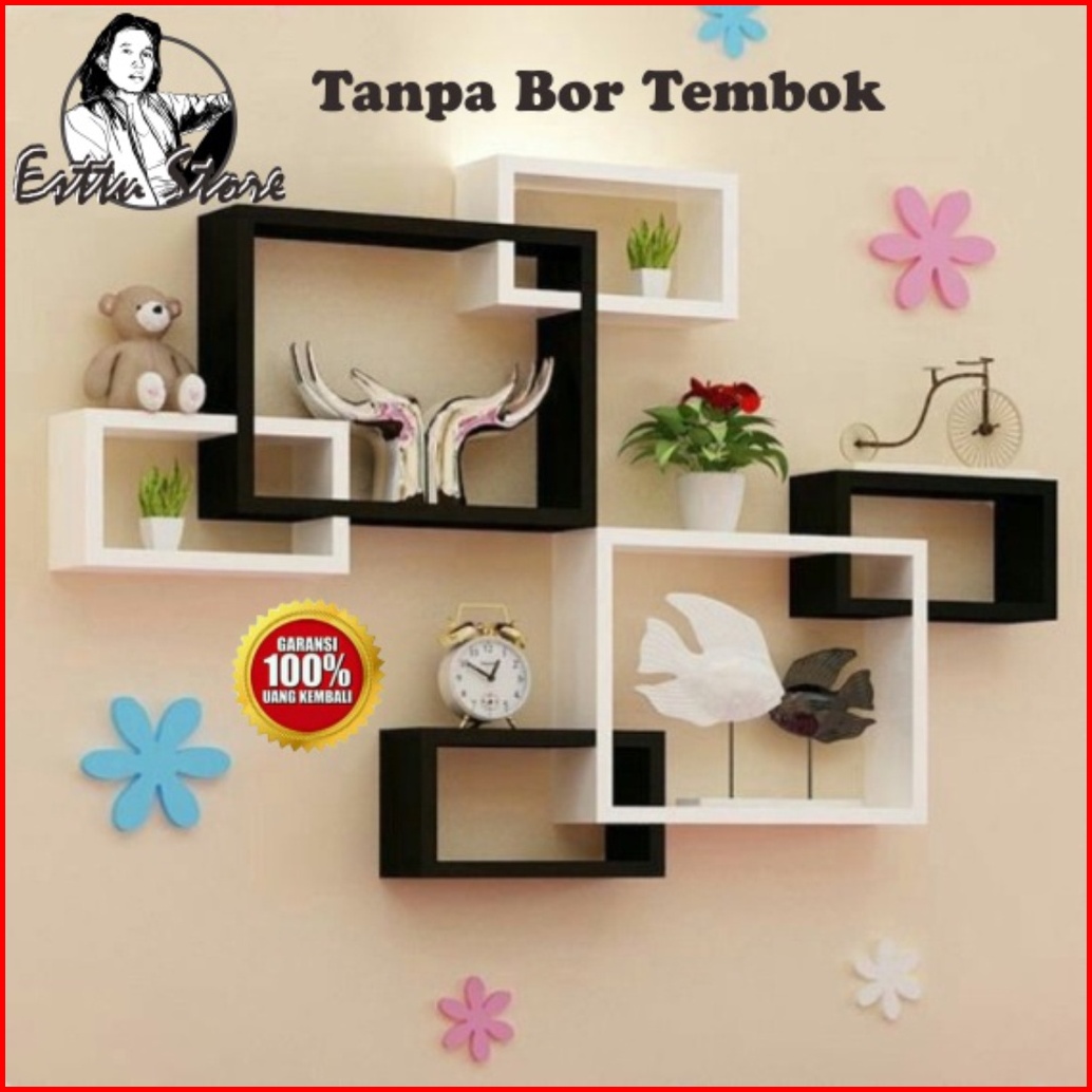 Rak Dinding 3 Kotak- Hiasan Dinding Rak Dinding Kotak Tempel Minimalis Sudut Kamar Ruang Tamu