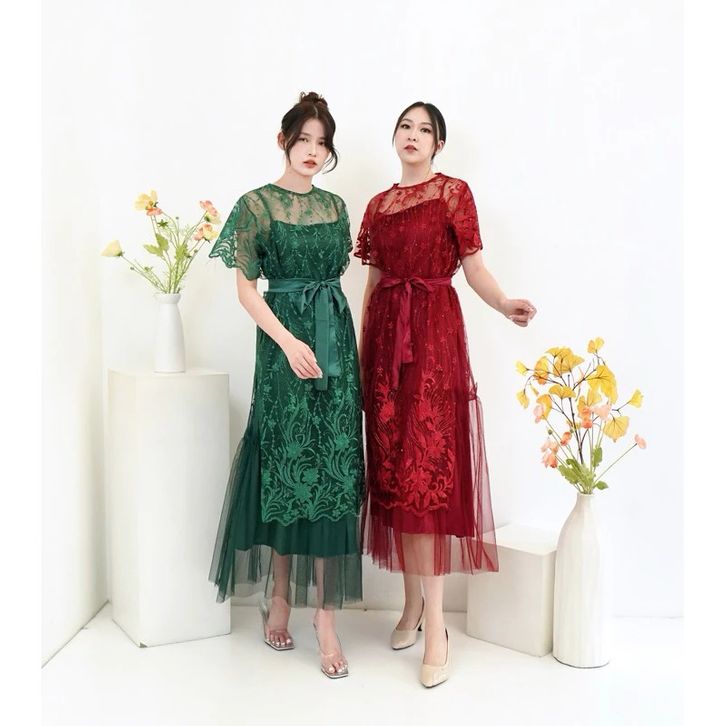 NADELIENE DRESS NATAL PREMIUM DRESS KONDANGAN WANITA MODERN NON HIJAB GAUN PESTA WANITA MODERN BAJU BRIDESMAID WANITA