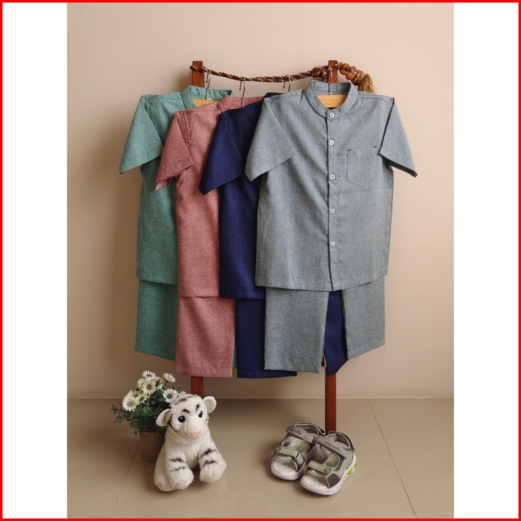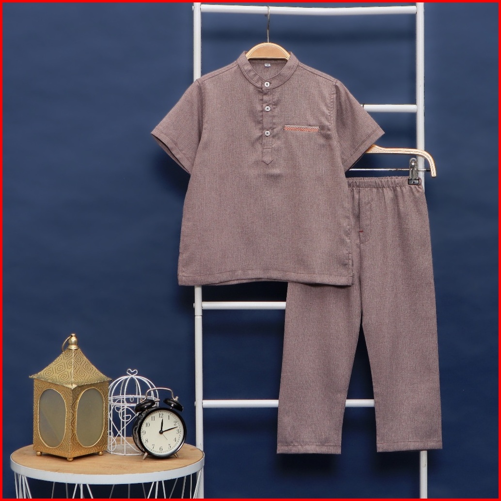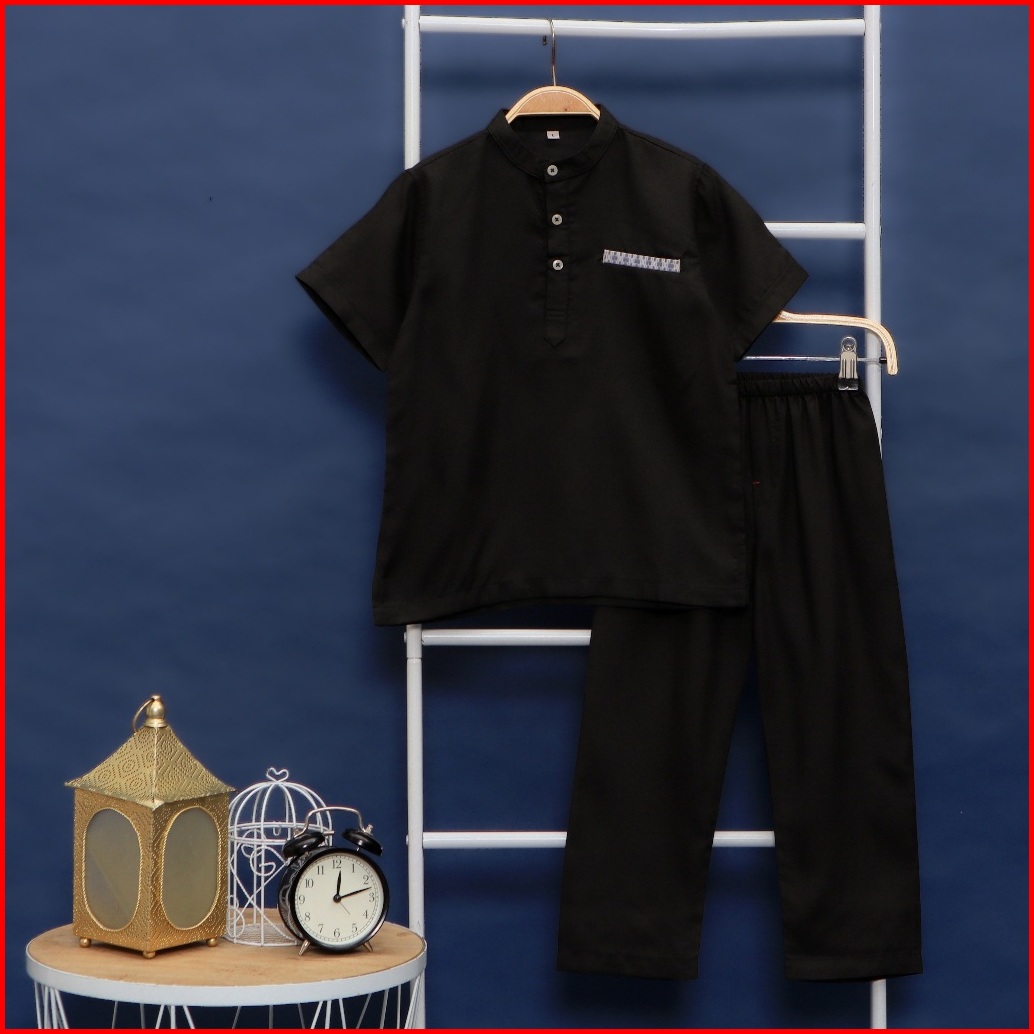 Setelan Baju Koko Muslim Polos Anak Laki Laki Premium Lengan Pendek Hitam Terbaru Usia 1-10 Tahun E101