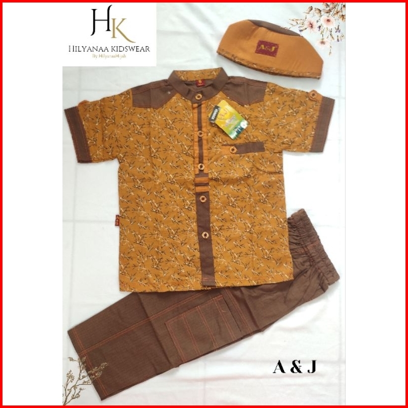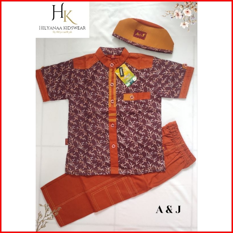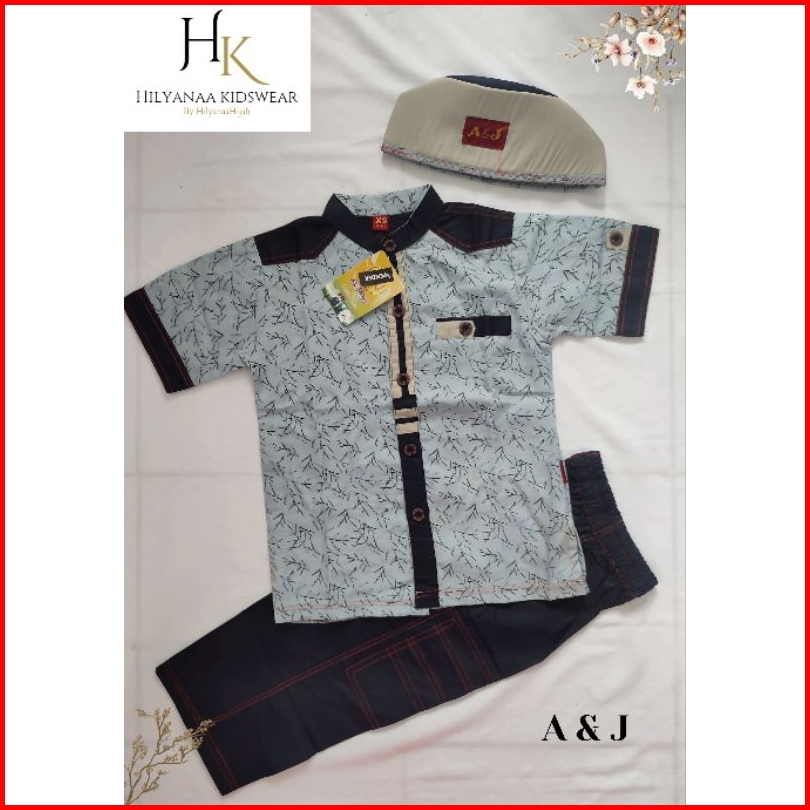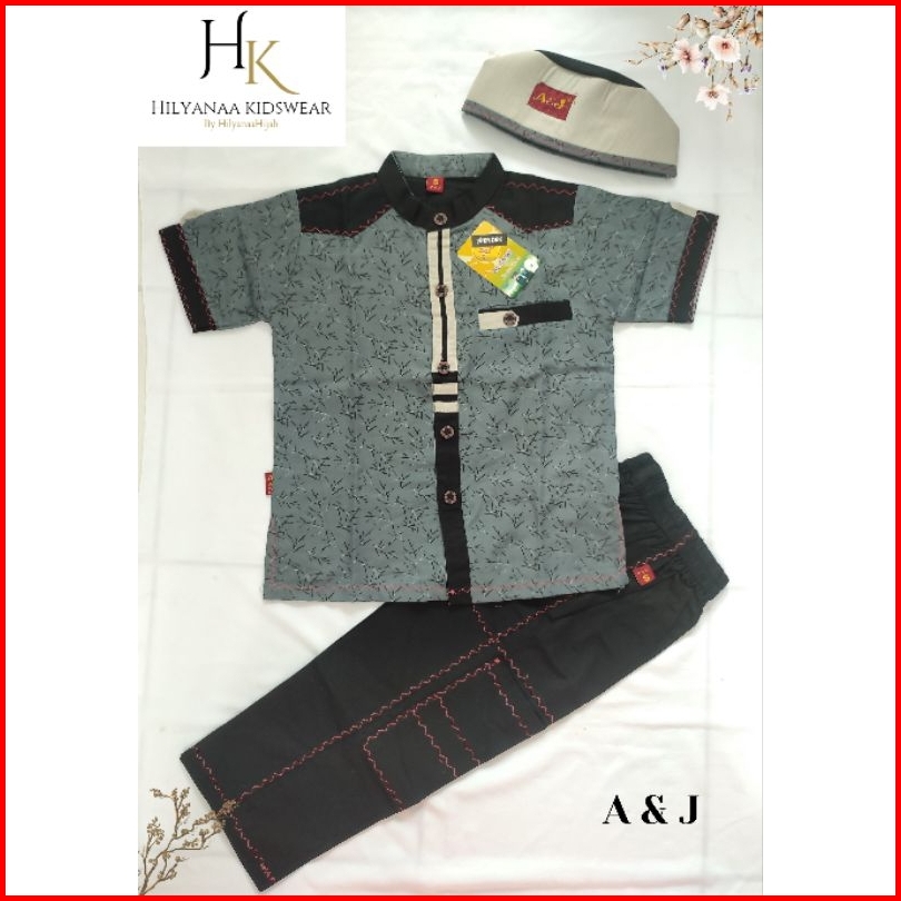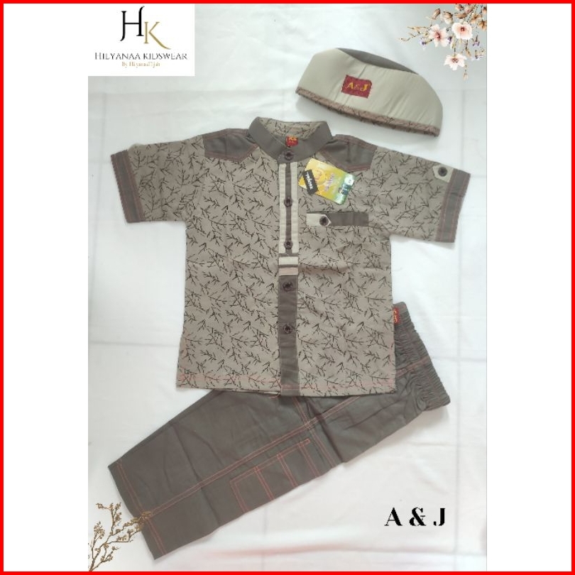 A J Setelan Koko Muslim Abbasi Motif Akar Lengan Pendek Anak Usia 3-13 Tahun