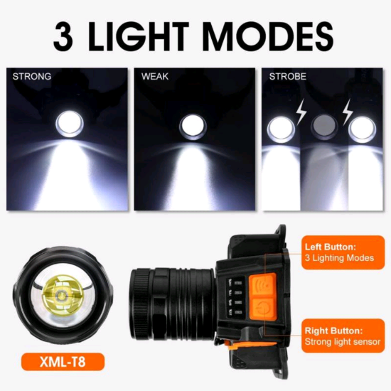 Lampu Kepala Headlamp Outdoor Camping Fishing Sensor Senter Kepala Super Terang Anti Air
