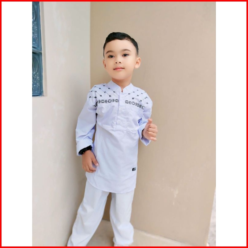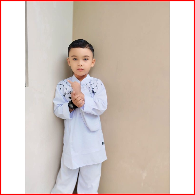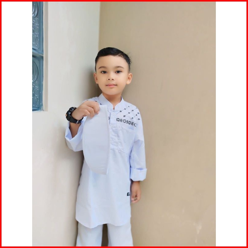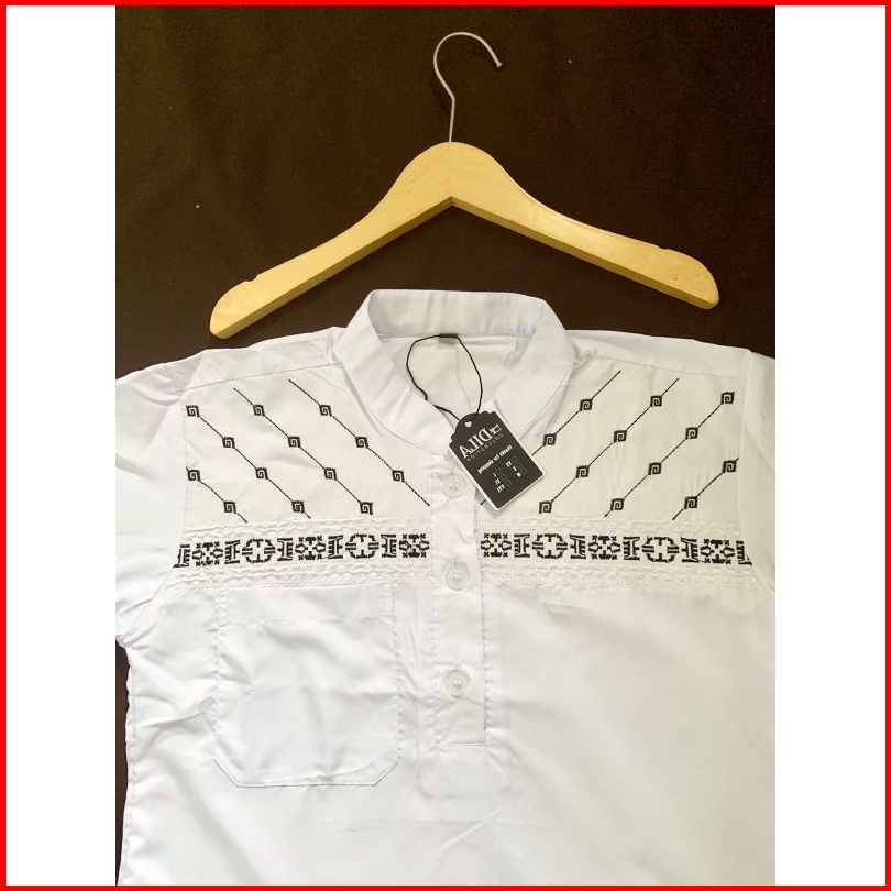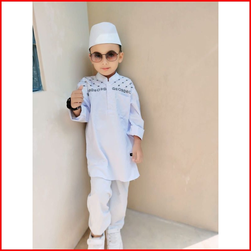 Baju Koko Anak Pakistan Motif Bordir Hitam Set Peci Dila