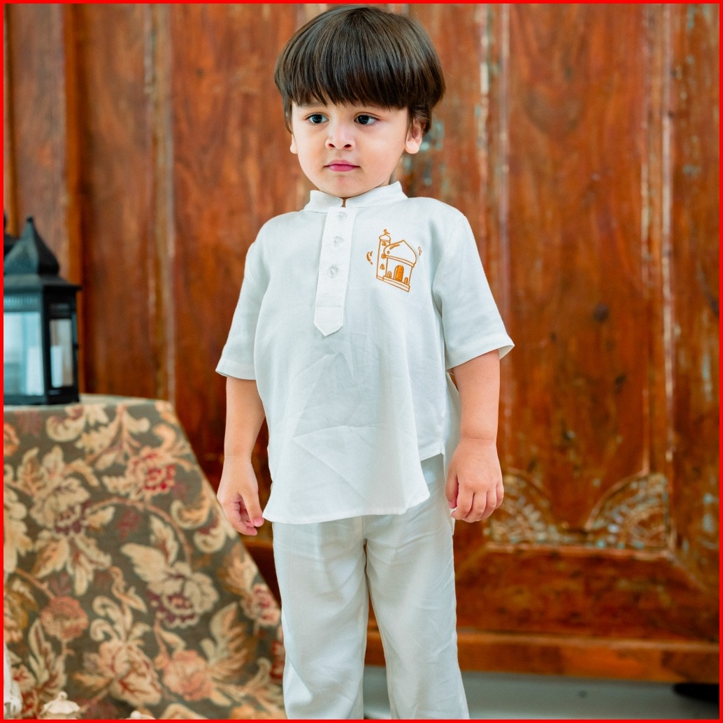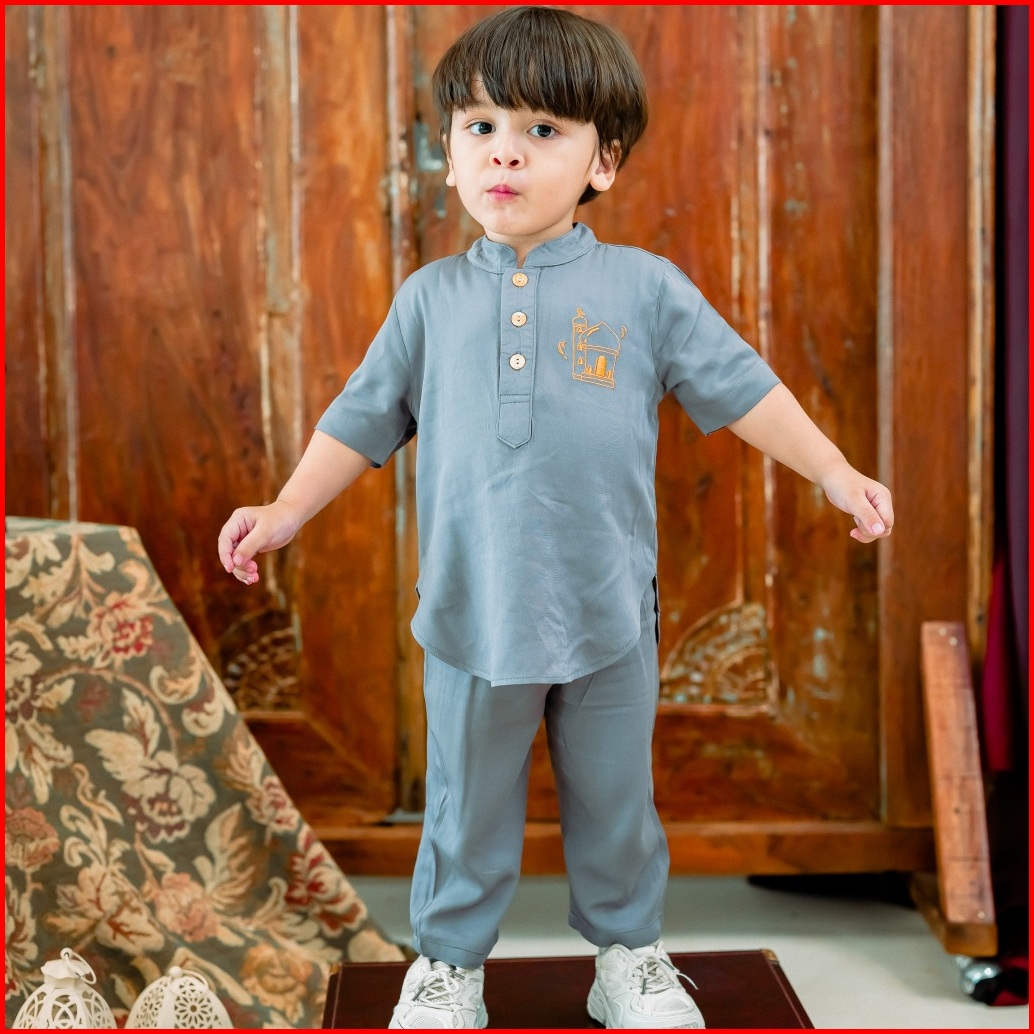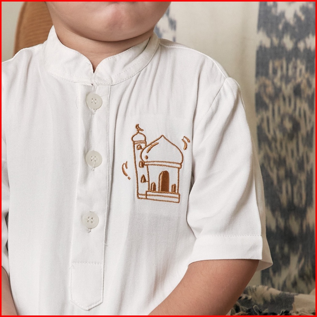 Hellomini 2-13t Jojo Koko Set Katun Anak Laki Laki Baju Lebaran 2025 Lengan Pendek Bordir Hmn1