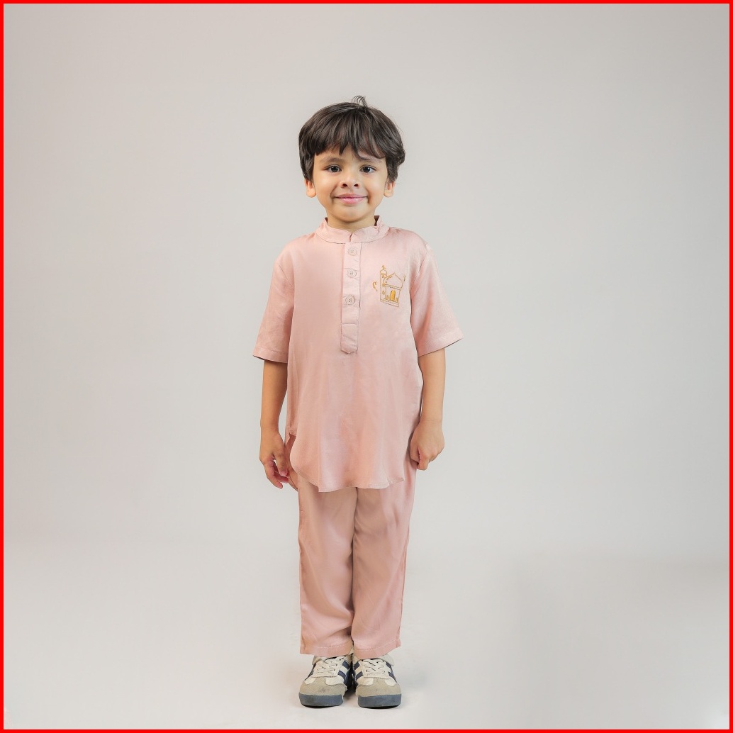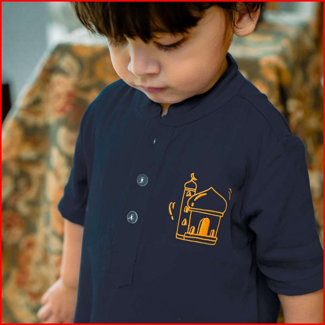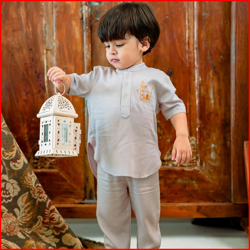 Hellomini 2-13t Jojo Koko Set Katun Anak Laki Laki Baju Lebaran 2025 Lengan Pendek Bordir Hmn1