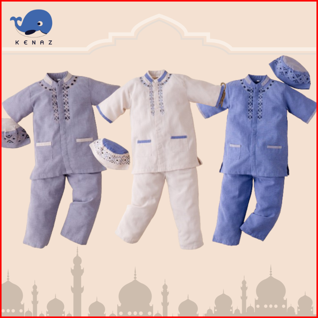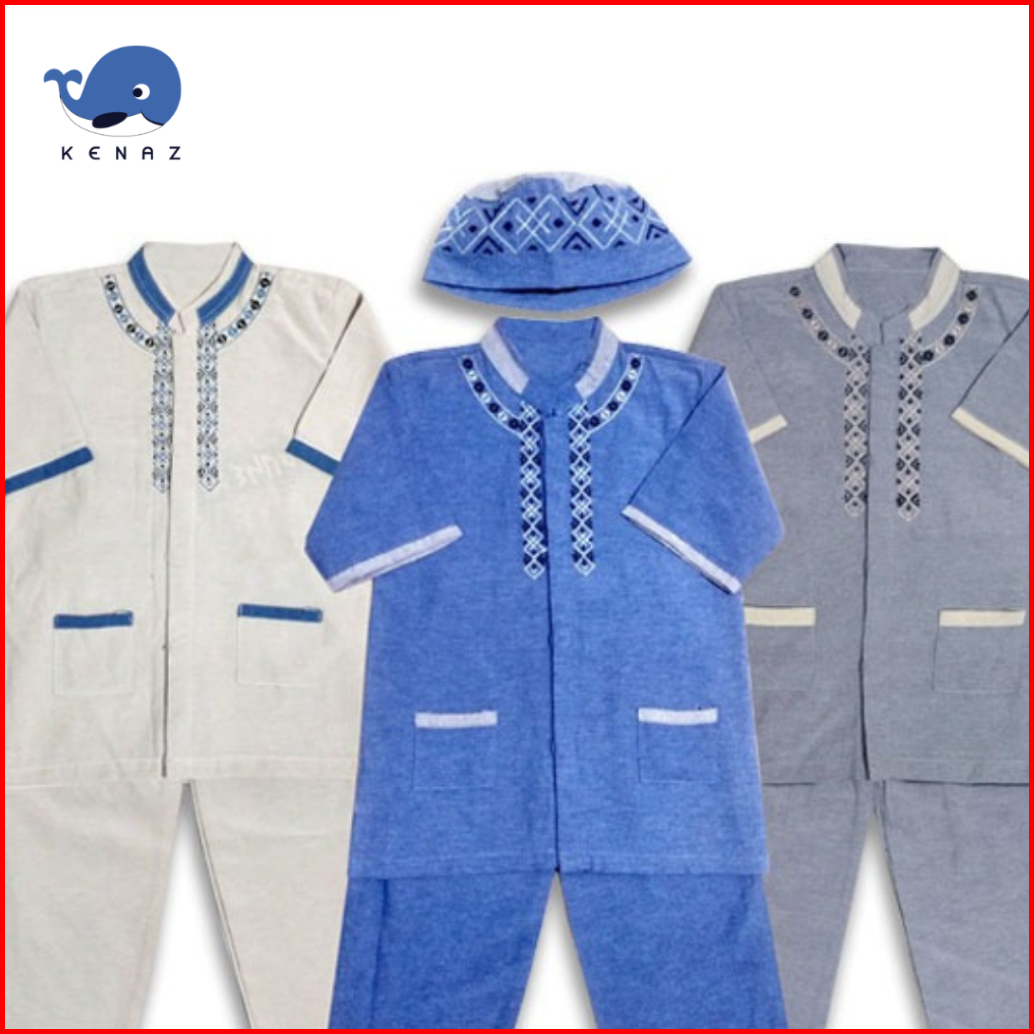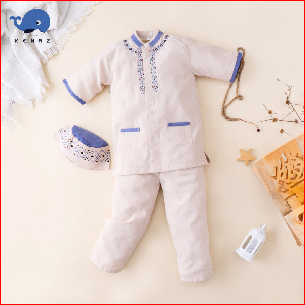 Baby Kenaz Setelan Kemeja Baju Koko Anak Laki Laki Muslim Bayi 1-3 Set Peci 12 Random
