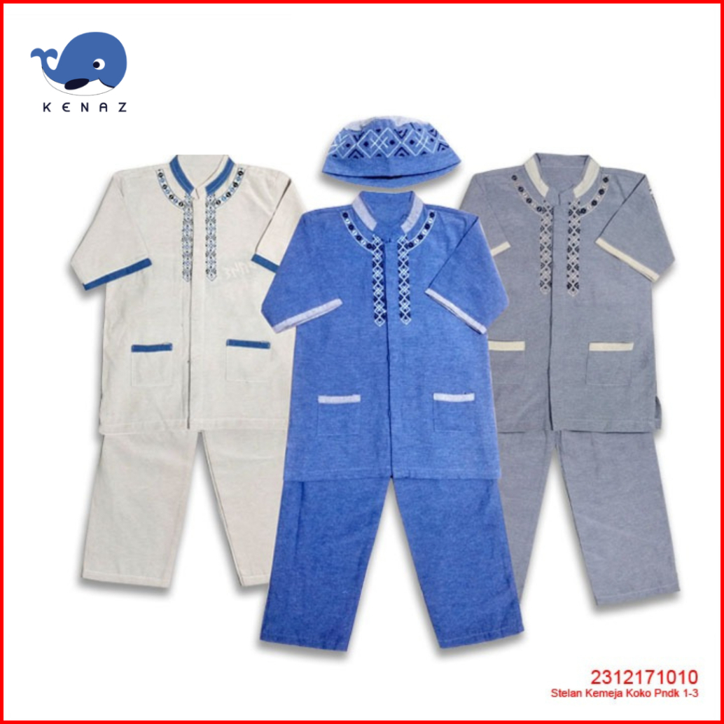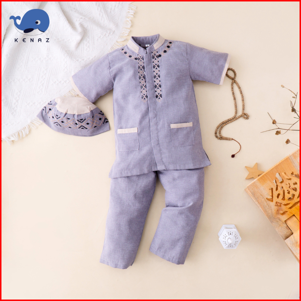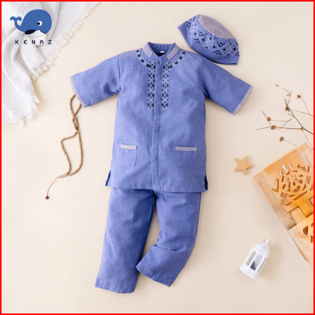 Baby Kenaz Setelan Kemeja Baju Koko Anak Laki Laki Muslim Bayi 1-3 Set Peci 12 Random