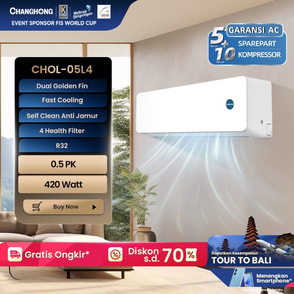 CHANGHONG AC 1/2 PK STANDARD CHOL-05L4 [INDOOR + OUTDOOR UNIT ONLY] [FAST COOLING] [SLEEP MODE] [ECO MODE]]V