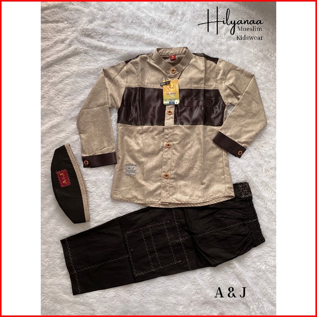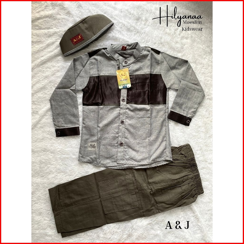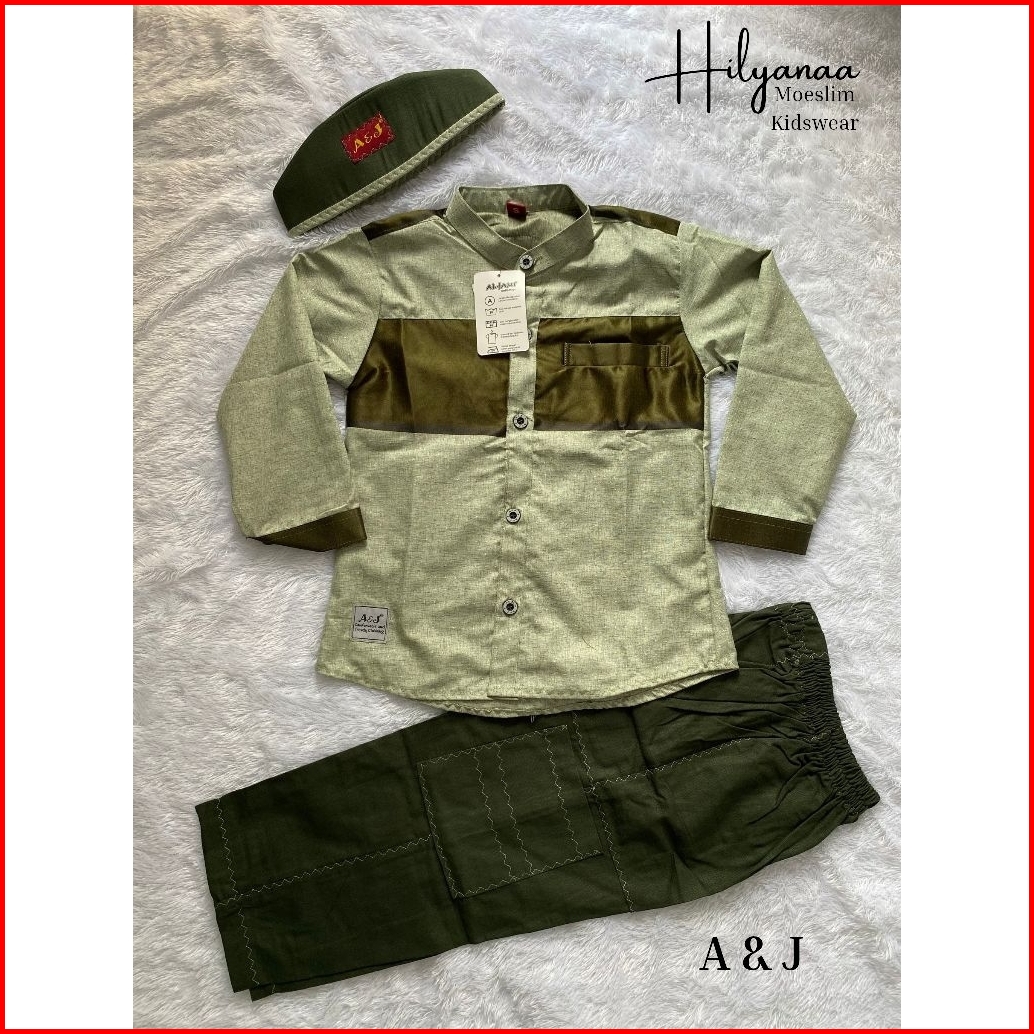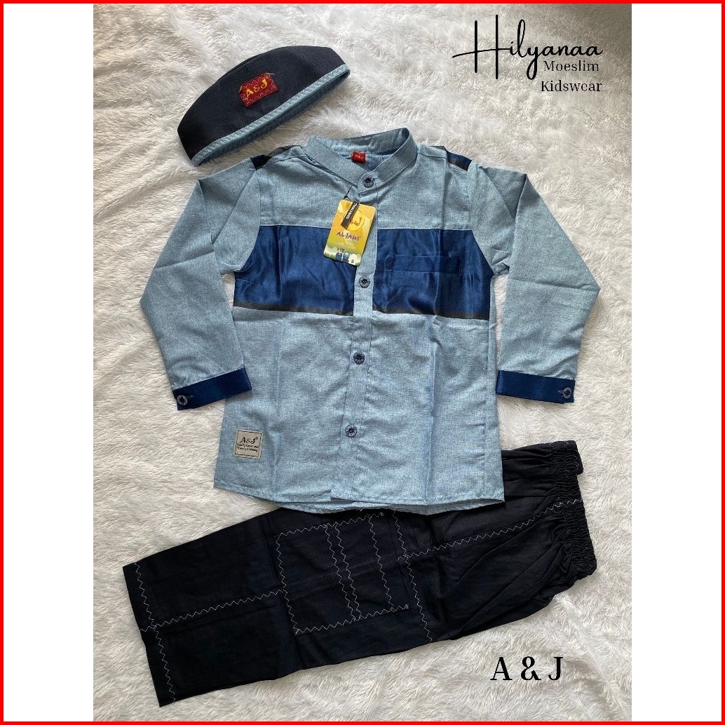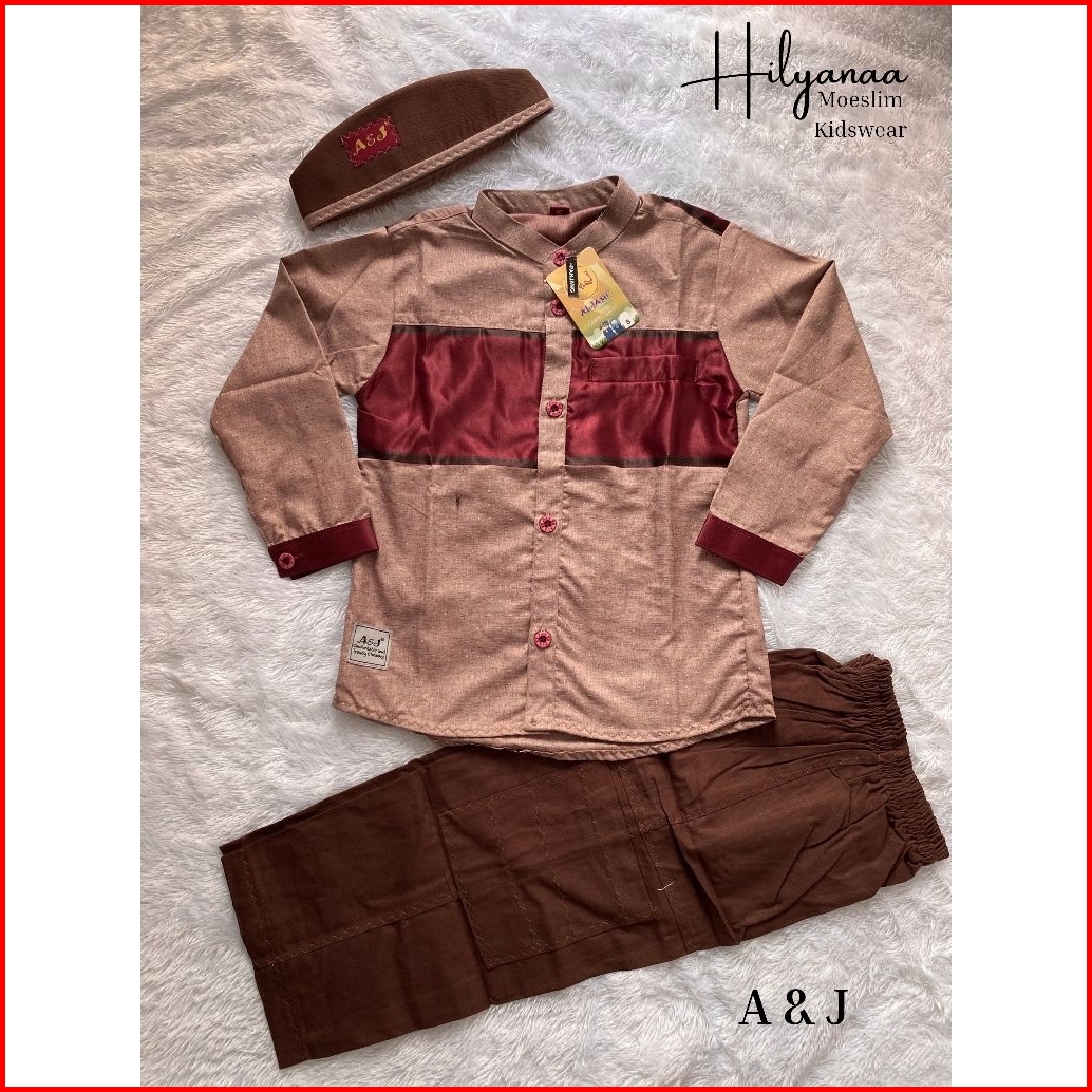 New A J Setelan Koko Muslim Cardinal Lengan Panjang Anak Usia 3-13 Tahun