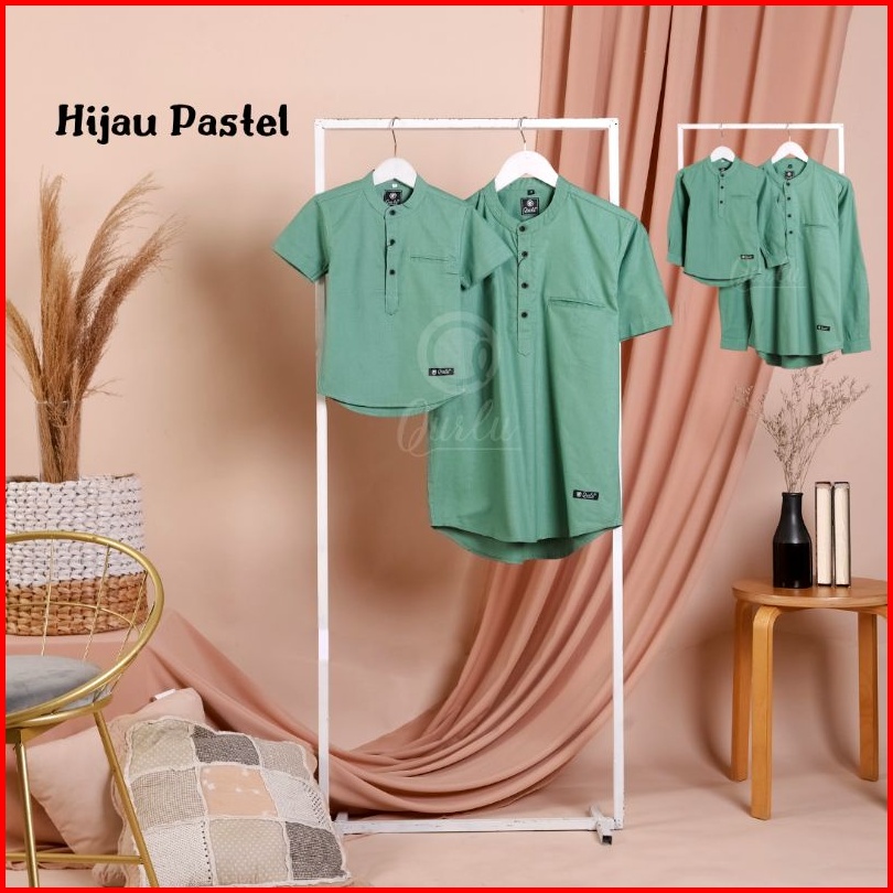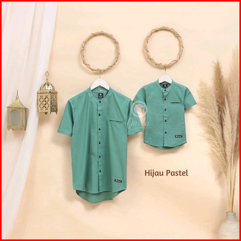 Qurlu - Kemeja Koko Dewasa Anak Warna Hijau Pastel Baju Couple Ayah Dan Anak Laki-laki Baju Koko Pria