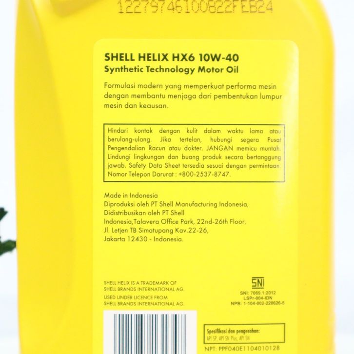 Shell Helix HX6 SAE 10W-40 1 Liter Api SP Oli Mobil Mesin Bensin Pelumas Synthetic Active Cleansing